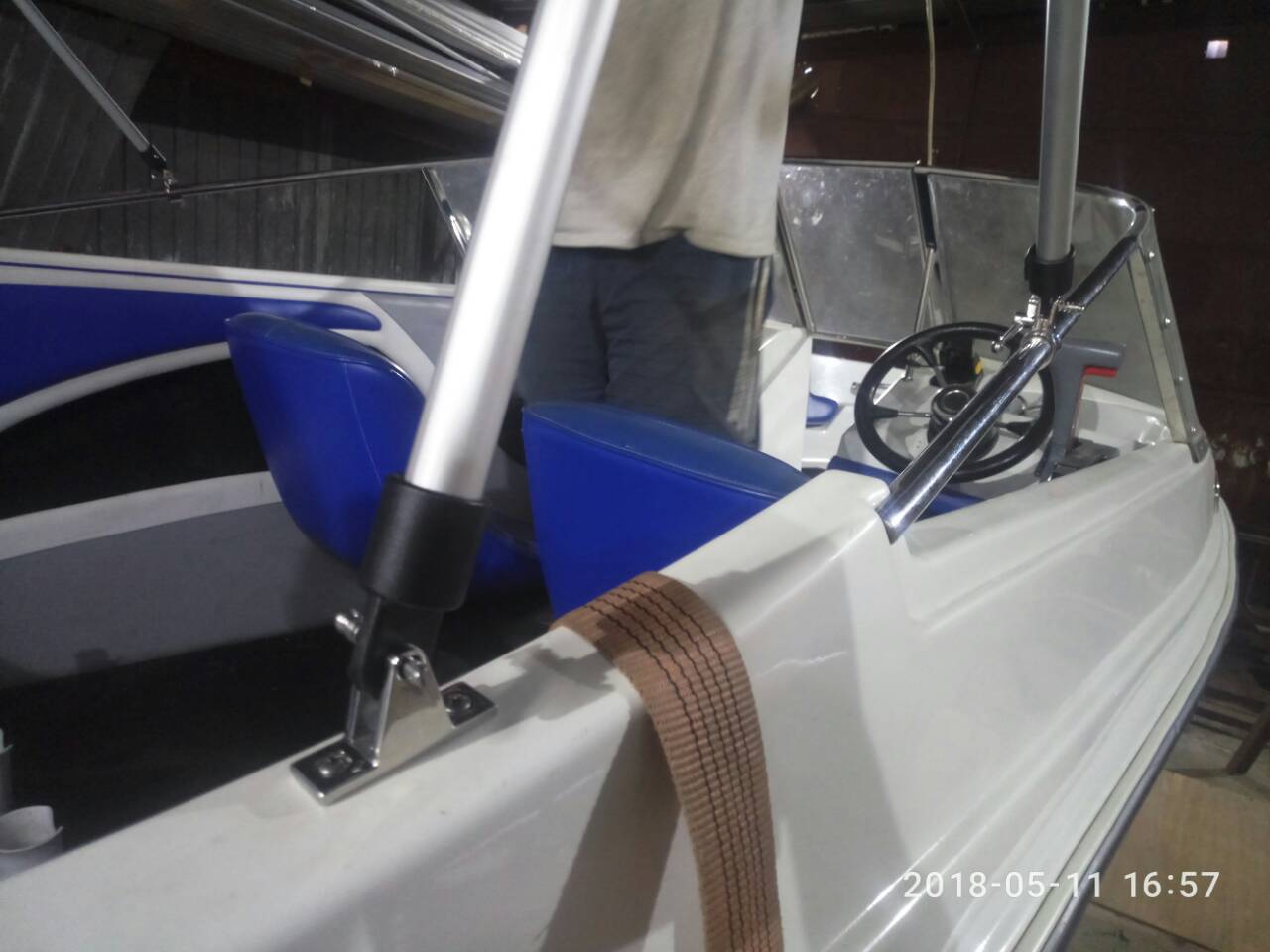 Один з нас, дав нам у роботу свого човна. Зроблено по лафету: Регулювання ложементів лафету Зварка опор амортизаторів Переробив носовий упор Зробив стяжки кріплення човна до лафету «унісекс» Закріпив номера Зроблено по човну: Встановив динаміки Відремонтував форточку Зробив посилення сидіння Погнули дуги Носовий тент БіМініТоп трансформер. Додакова задня стінка з москітної сітки. Власник човна купив 5 жилетів нашого виробництва І скористався послугою доставки човна на РОП. Бажаю Кепу натхнення, наснаги і приємних моментів і сім футів під кілєм!