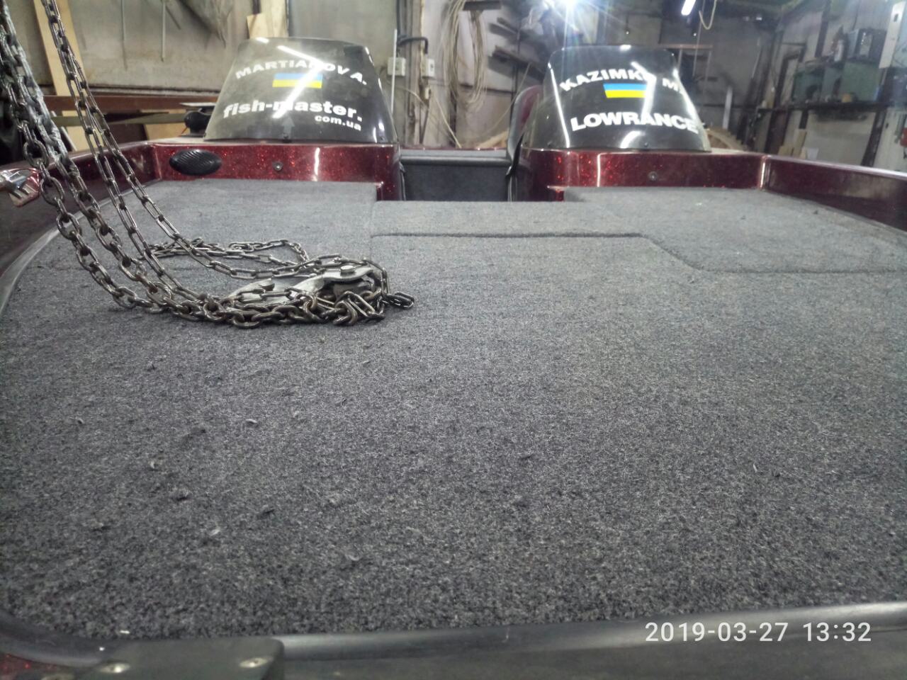 Човен Styngrey із стаціонаром, трошки втомлений , али ми його привели до тями, з Власником човна обговорили і домовилися про перераховані мною роботи. Підлогу у кокпіті ми не кріпили і не ставили сидіння , так як човен завтра вирушає на доробку силового набору підлоги (стрінгера і шпангоути, ми такого не робимо.