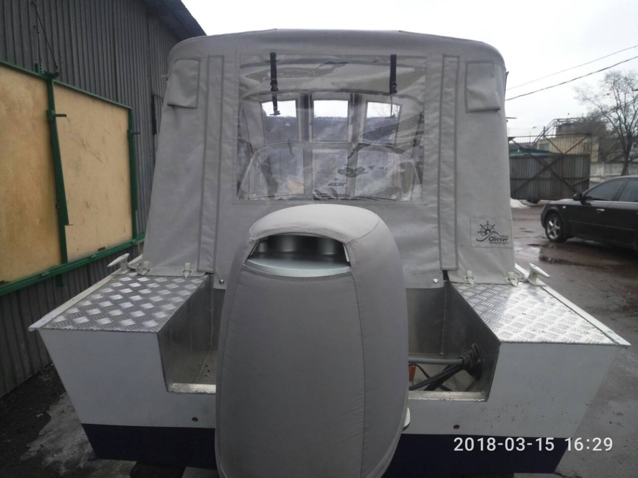 Мої вітання водно-моторному братерству. Представлю вашій увазі, наступну нашу поробку, транспортирувальний тент. Тент виконаний у класичному стилі, з двома віддушинами і невеликим логотипом компаніі виробника. Гарного усім перегляду. З найліпшими побажаннями від Glisser - ательє !!! Як завжди! Бажаю Вам вдалого вечора, гарної робочої неділі і успішного життя