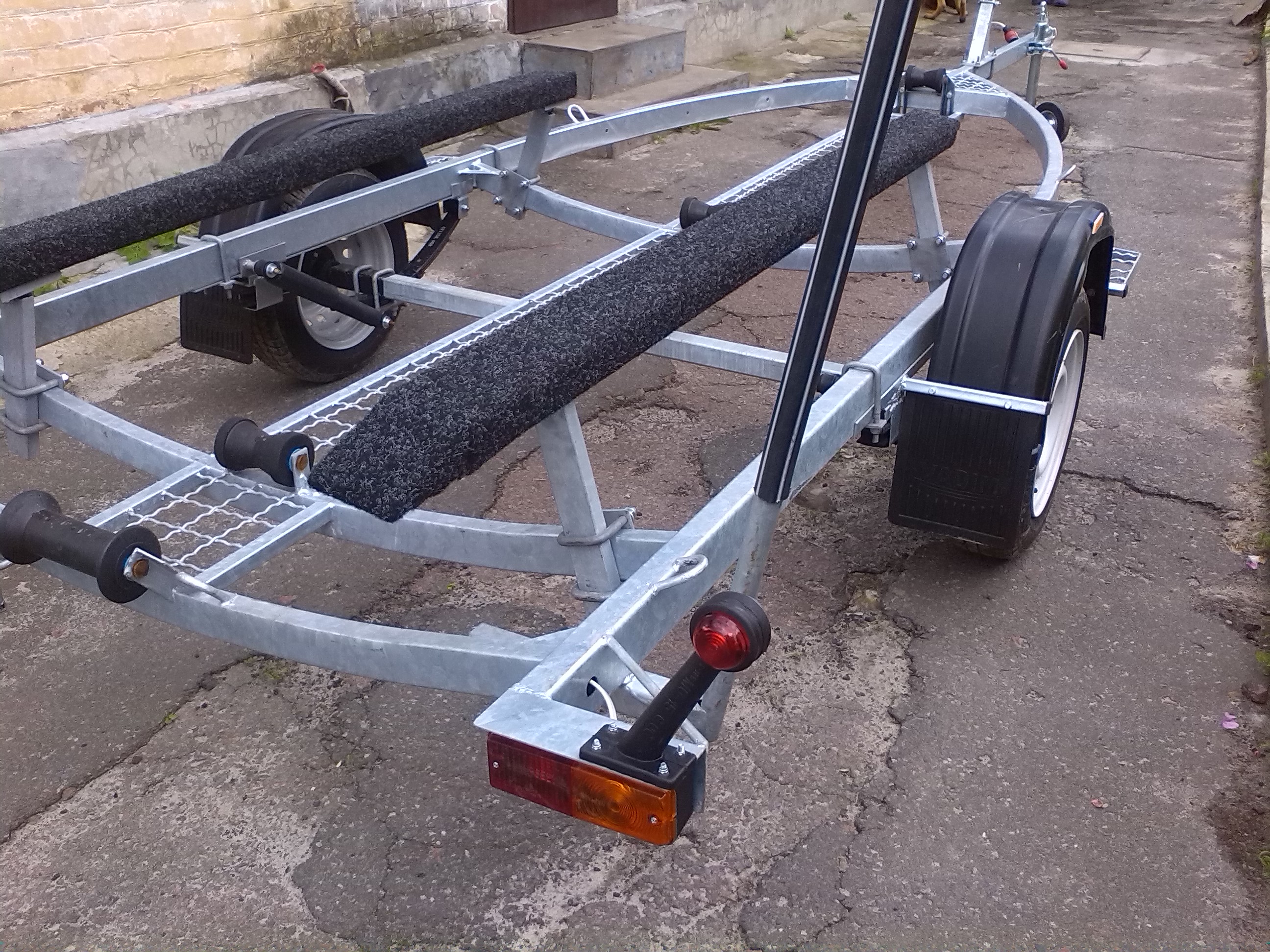 Вчера был на работе у Сани Пасика. Там продается лафет ЮМС в отличном состоянии, под 5м лодку. Хозяин хочет 700 уе. Тел найти на форуме не проблема.