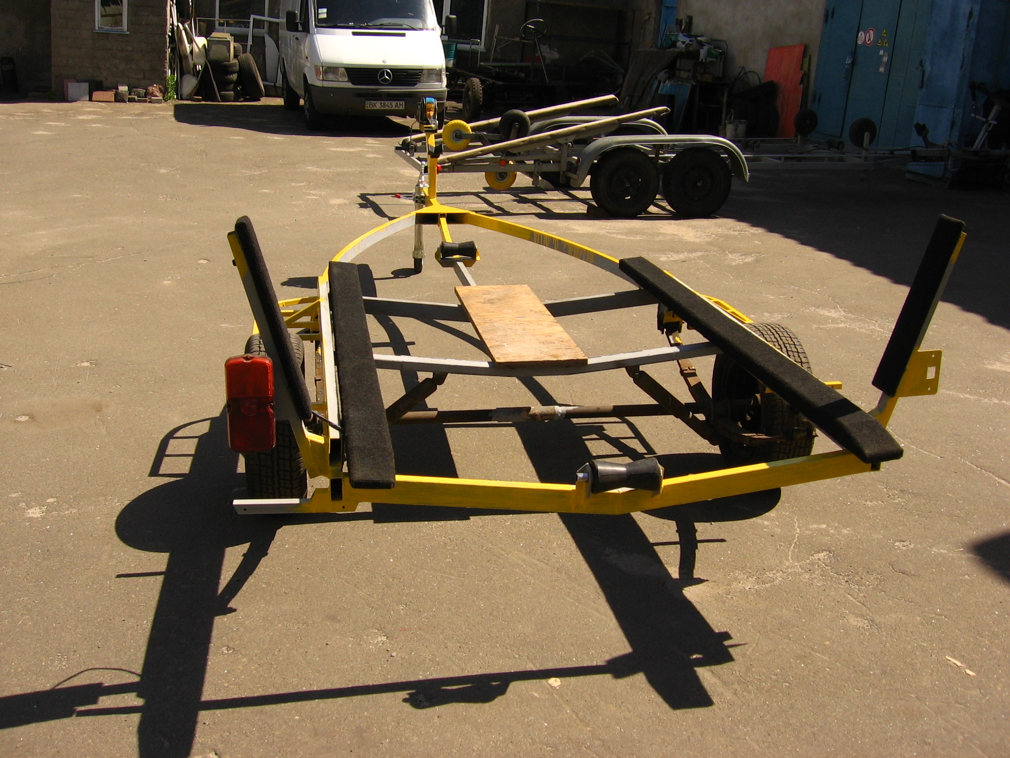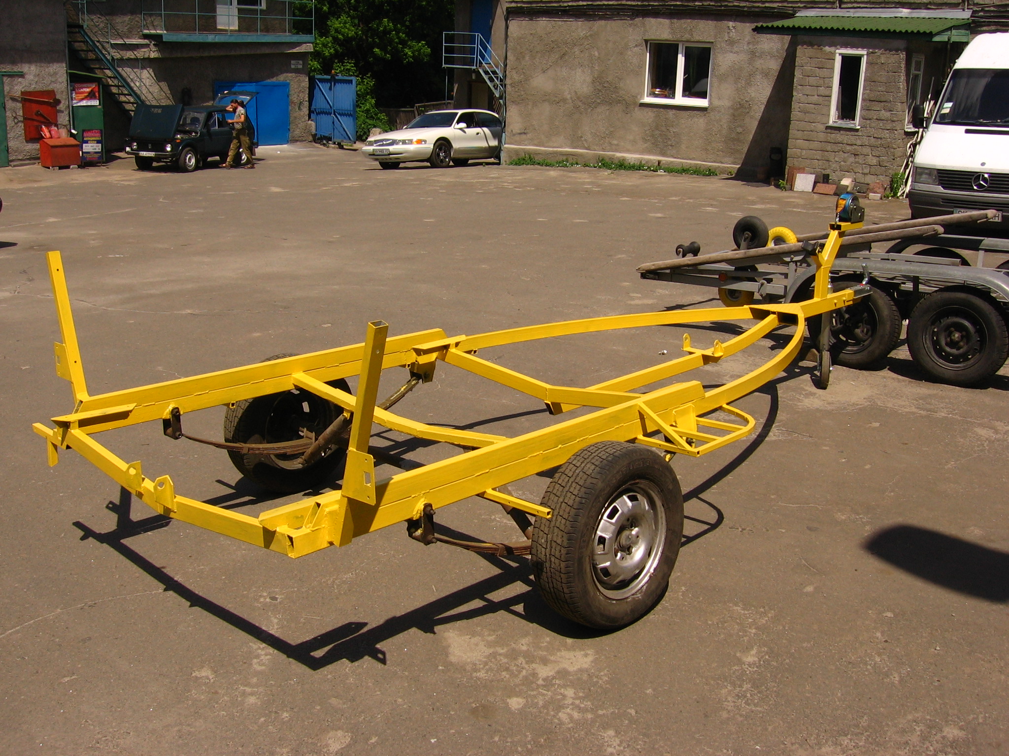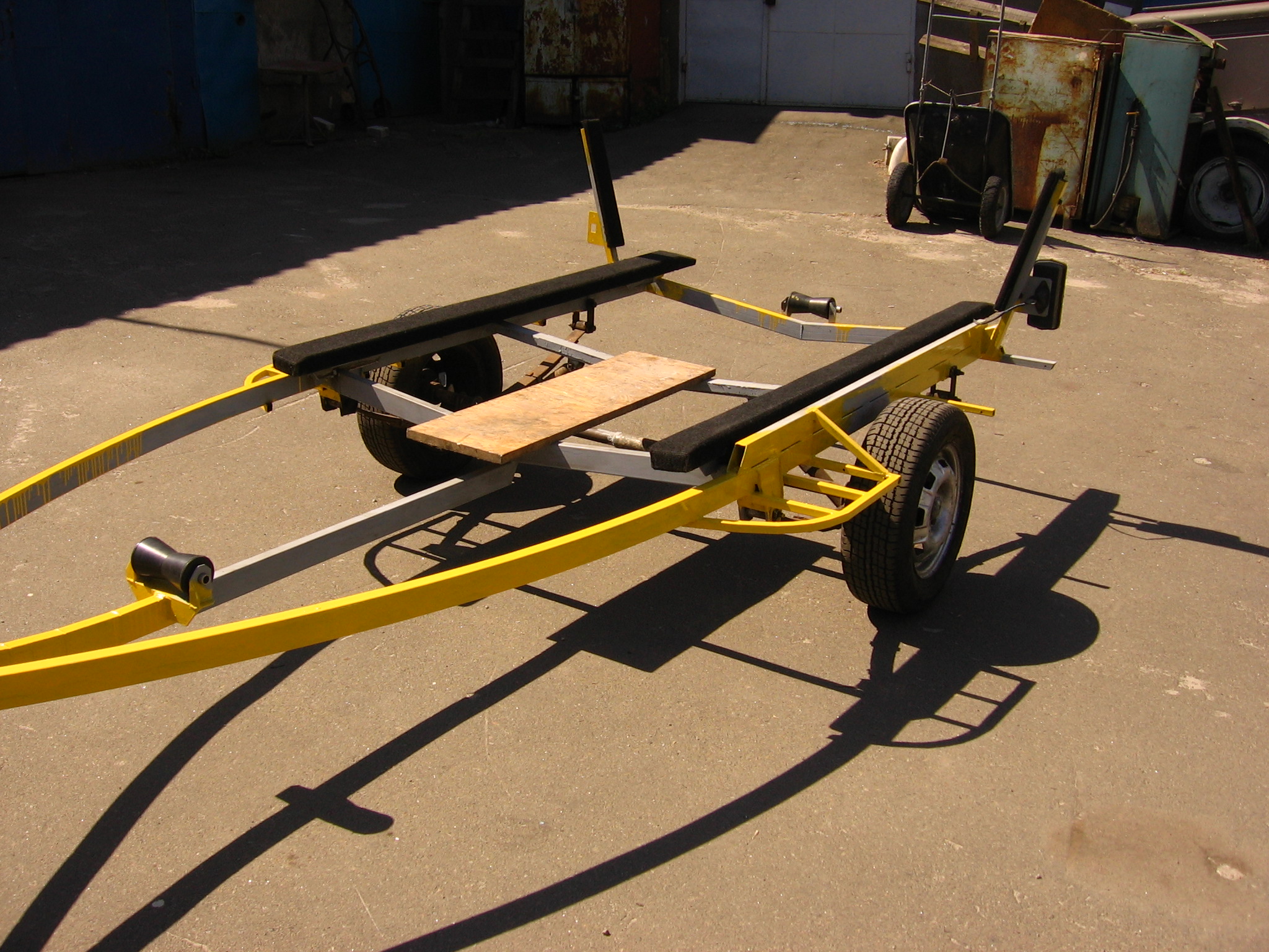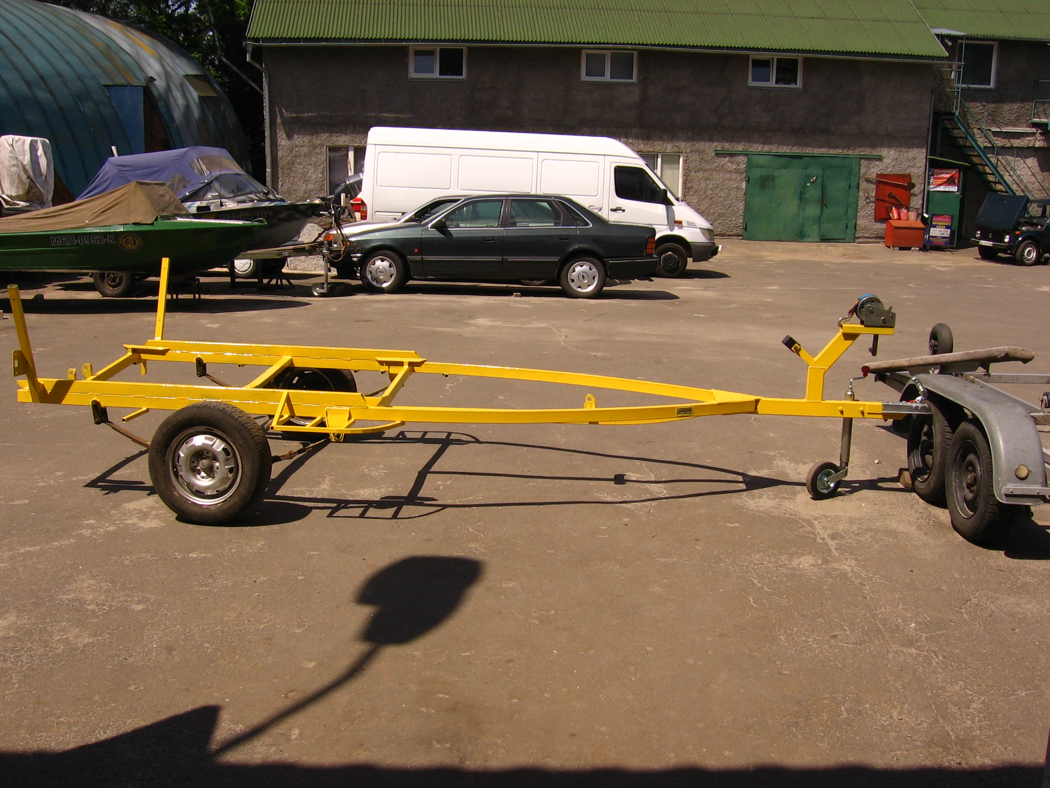 Может и не так дешево как хотелось вначале но сделал четко под свою лодку и так как хотел. Неприятно дорого новые колеса (есть и старые но облезлые и страшные - передумал ставить) и документы, все остальное терпимо.