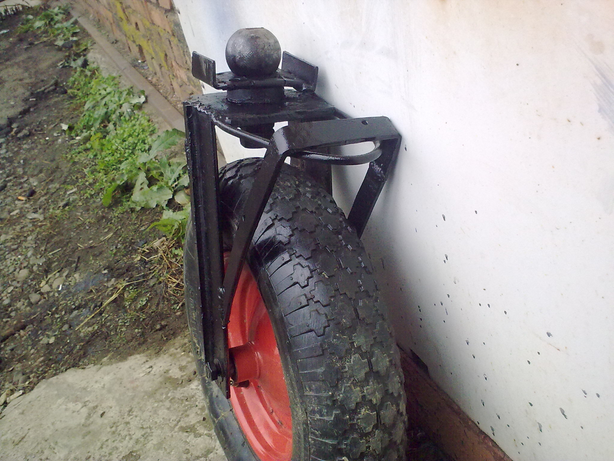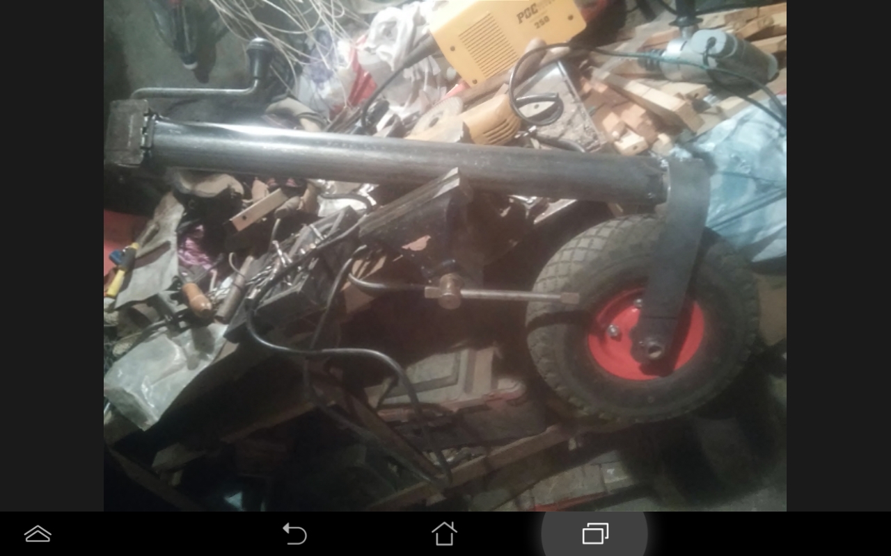 Берем старый жигулевский домкрат, 50 см трубы 1.5 дюйма, 40 см трубы 1.25 дюйма, полосу 45 см 4*40мм. 12см трубы 0.5 дюйма на ось колеса. И хоть чуть- чуть прямые руки. А так же электроинструмент, дрель, болгарка, маленький сварочник ( я оболжил у друга). Распиливаем домкрат, нам нужна голова с механизмом и втулка с резьбой для шнека. Привариваем к 1.5 дюймовой трубе голову домкрата со шнеком. Привариваем к 1.25 дюймовой трубе резьбовую втулку через толстую шайбу. Сгибаем полосу для колеса, привариваем. Просверливаем отверстия под ось колеса. В общем все как то само собой складывается когда начинаешь ![]() Все обильно смазываем и собираем. ![]() Себестоимость: труба 25 грн. У меня 1.25 дюйма нержавейка, была в закромах. Если нет то еще 20 грн. Полоса 10 грн. Металлический диск для колеса 60 грн. У меня была покрышка и камера. Сверло на 20 - 80 грн.