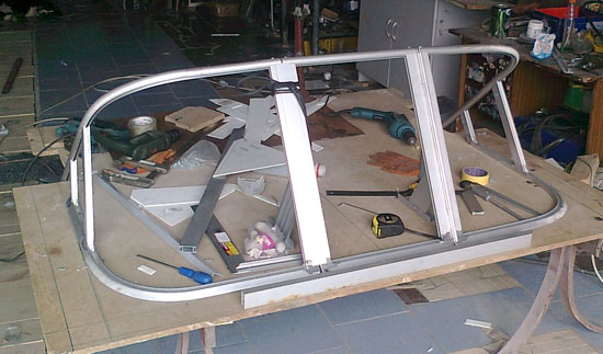 Всем ЛЮБИМЦАМ волны привет!!! Блин чуть не по теме, сначала приветствие написал "Привет любимчикам волны", подошла жена прочитала и говорит:-" Ты ещё голубчики напиши, тогда не то что в репутацию спасибо, а полбу бан", чуть посмеялся и переписал. Вчера начал доделывать лобовое стекло но по высоте без сиденья не мог определиться, пришлось начать с них. Высоту рундуков померял у себя в машине, и сидеть удобно и аккумулятор влазит. Высота стекла на уровне глаз, правда колени под торпедой впритык. На стекло буду "натягивать ал.трубу 25мм. Пробовал сегодня гнуть, с песком и феном, 1.5м пришлось выбросить на мусор, помогите советом, спасибо.