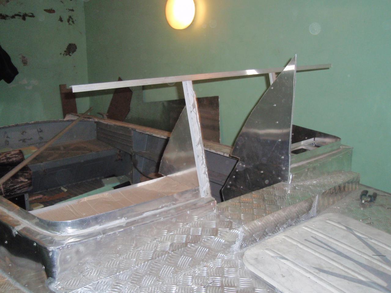 Доброго здоровья Капитаны! Наблюдая с монитора за Вашими кораблями, загорелся и я переделать свой прог (хотя уже почти его продал, но в последний момент стало как-то жаль... уж больно хорош). Благодаря Фрегату накопал кучу фоток и нужно-полезной информации и решил воплотить свою давнюю мечту.Взвесив все за и против начал и днём и ночью пропадать в съёмном гараже со своей ласточкой. По поводу лишнего веса постройки сильно не кричите, примерно 50-60кг (буду меньше есть перед рыбалкой), можно было сэкономить но решил укрепить по полной.