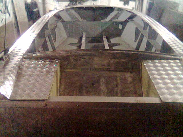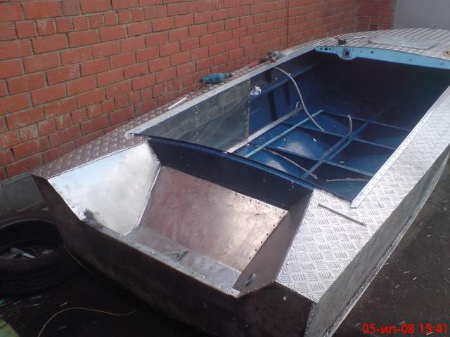 Точнее я его дотюнинговывал. В носовой рундук, он теперь стал якорным, вкрячен танк от вольво 940 на 70л., проложен жесткий топливопровод, задний правый рундук расширен и поделен для АКБ и клади, левый так и остался тазиком для рыбы, переложена практически вся ламинированная фанера, установлен мерк 50 4т, естественно транец востановлен и усилен...