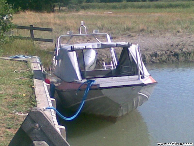 - обычная моторка с тентом! Только пульт управления смещен к носу (запалубленному рифленкой) - зато весь кокпит свободен, и высокое лобовое стекло. Типичный американец для рек с быстрым течением и камнями-перекатами.