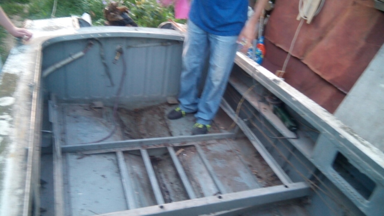 Краску старую пескоструем снимать, новая ляжет хорошо на пескоструенную поверхность, краску рекомендую Пенталак УР-121. Пол фанера ФСФ 12 мм, можно и 9 мм, но надо усиливать будет, уголки бросать под неё. Такое имеет смысл только, если борта будут зашиватся. Транец рекомендую делать весь в комплексе с рецессом, всё из профиля алюминиевого и рифлёнки.