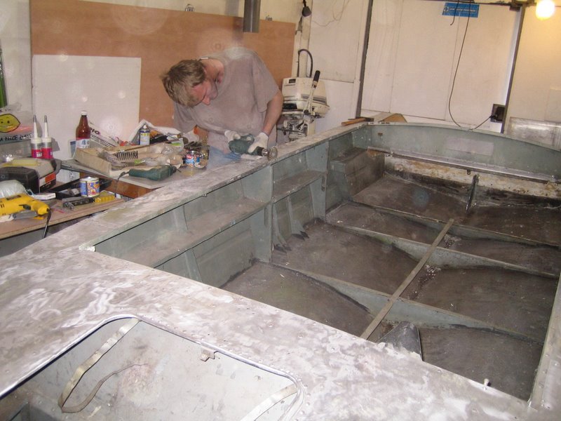 Вмятины правятся после нагрева горелкой. С одной стороны мажешь растворенным в воде мелом, как мел почернеет во время нагрева ставь надставку и клепай по кругу к центру вмятины молотком. На это место желательно поставить накладку на заклепках или болтах. поверх нее можно ложить фанеру и стягивать весь транец болтами. Проблема небольшая. Кницы либо шпильки распорные в обязе.