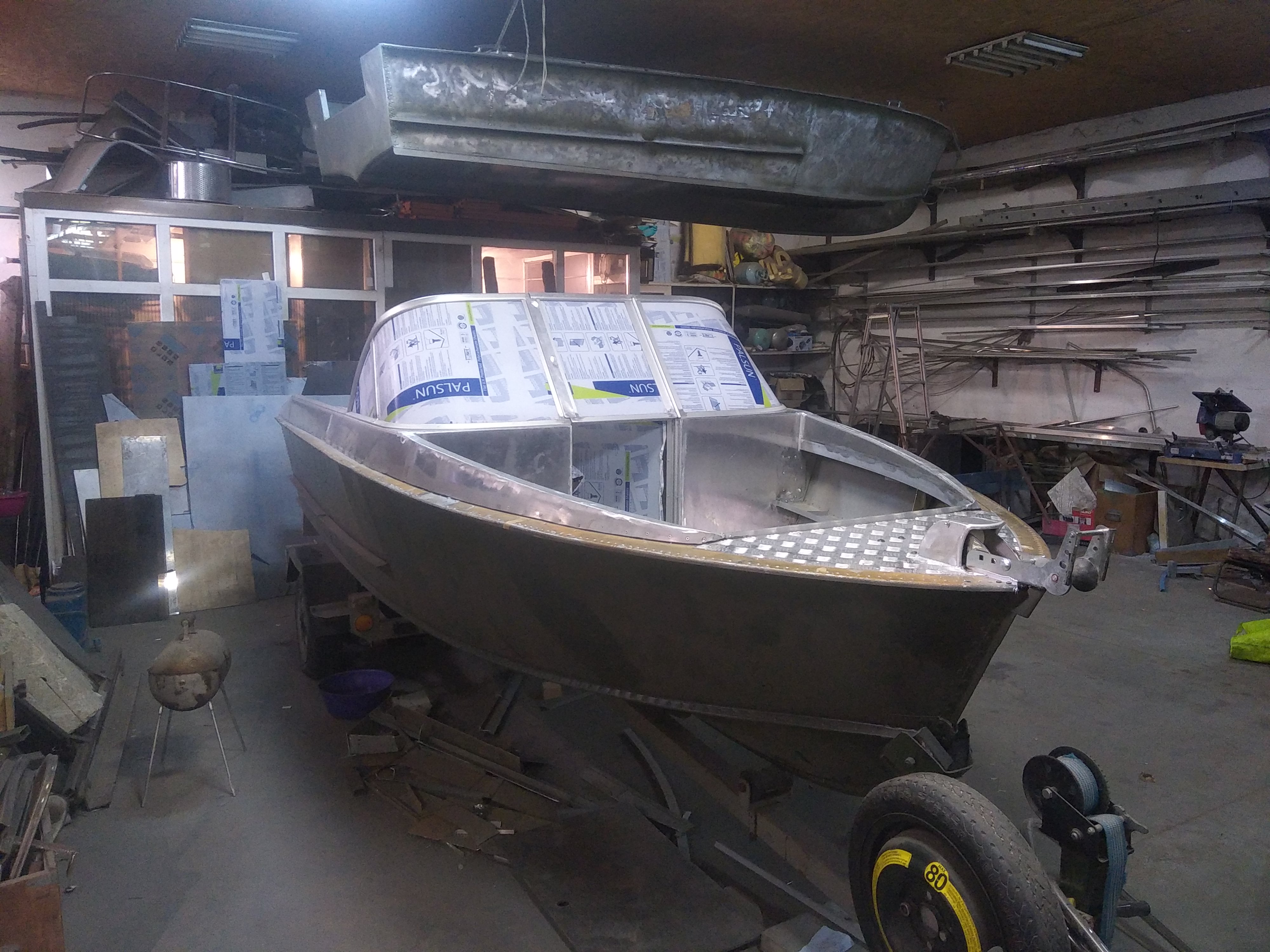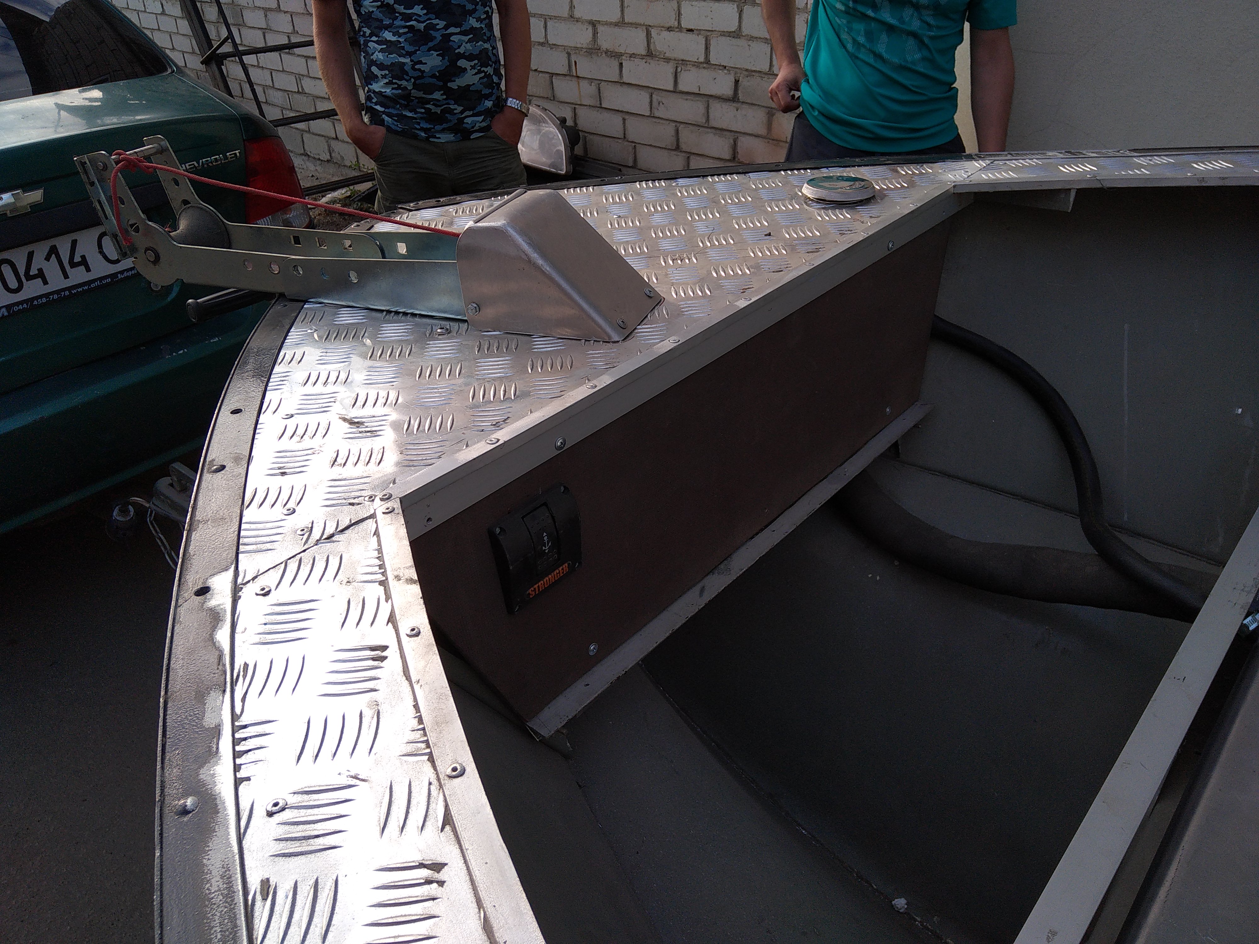 Вот установка лебедки по оси лодки но со смещением в сторону. Изнутри в точке упора усилитель стоит. Материал амг 4мм, соединение сварка. Но в принципе можно и на заклепки либо винты собрать
