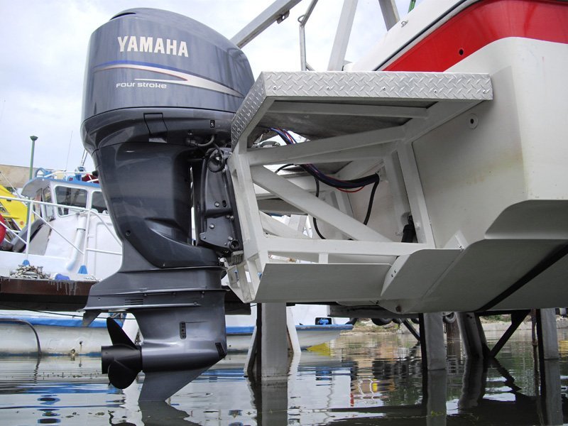 А фото выносного транца на вашей лодке есть? Возможно, можно будет решить задачу дельфина проще: обойтись без трим-пластин, только добавив днищевую пластину на транец. (подобный вариант будет и правильно подводить поток к винту, и работать стабилизатором) Как пример: |