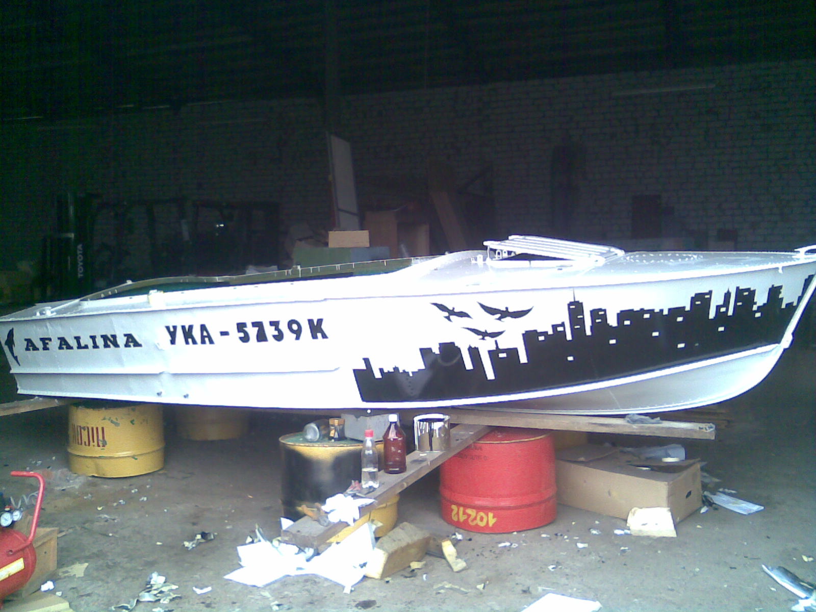 На фото 1 - вот такая убоганькая она мне досталась(вся побитая краска лущилась,и вся в ракушках как панцирь)Первый раз на воде показал километров 15-20 в час на полном газе. Ничего страшного- сделаем, решил я.