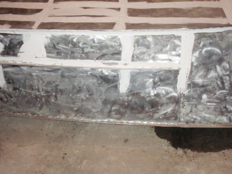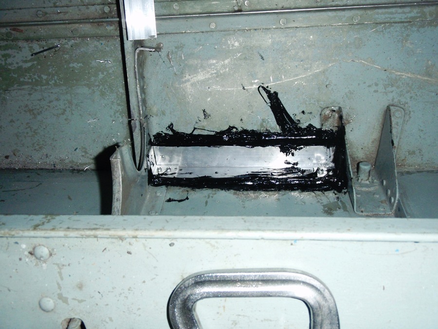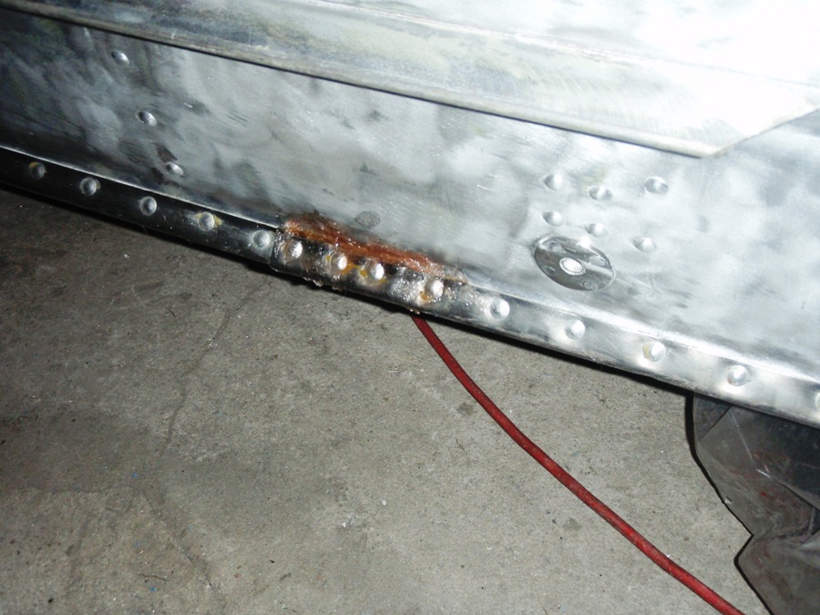Вопчем сделали сегодня помазание кораблику. После того, как швы высохли, дунули из нутри керосином под давлением. Ну, что сказать, я боялся будет хуже, а так почти айс. Запотели три заклепки на как это правильно назвать (ребро над скулой) стрингер? Ну и при зачистки краски была обнаружена пробоина, над скулой в 2х миллиметрах, размером с пол ногтя мизинца. Которая была залеплена из нутри чем то типа эпоксидки когда то давным давно. Дык вот она тоже замокрела.