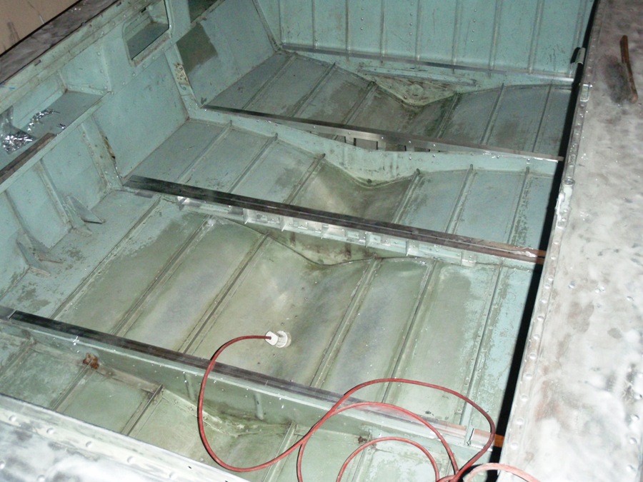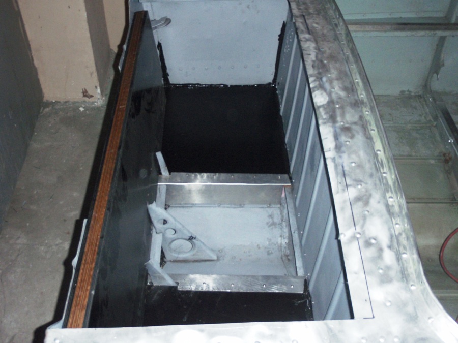 Ну во общем сегодня эпаксидка застыла, прилипла намертво, хрен чем отдерешь, чутка было помазано снаружи, побольше в нутри и потом еще придавил уголком на герметике, расклепав его к шпангоутам. Потом по извращались малехо с полом, рецесом и транцем.