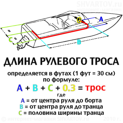По быстрому фоток ненашел. Для начала надо повесить мотор, потом прикинуть троса, кабель и рулевой трос. Приблизительно задумку понял сфоткаю заглушки и троса (возле лодки буду через 1-3дня). И здается што троса надо 14 футов.