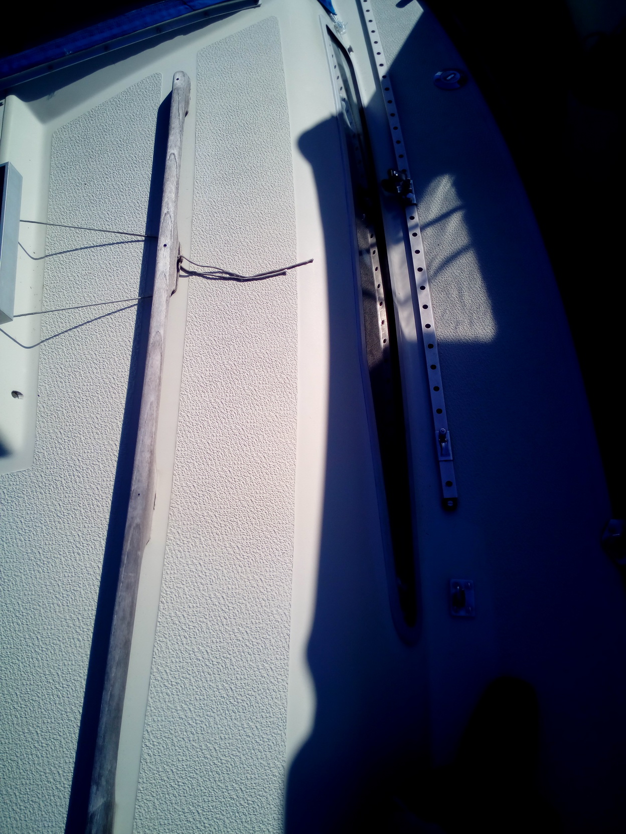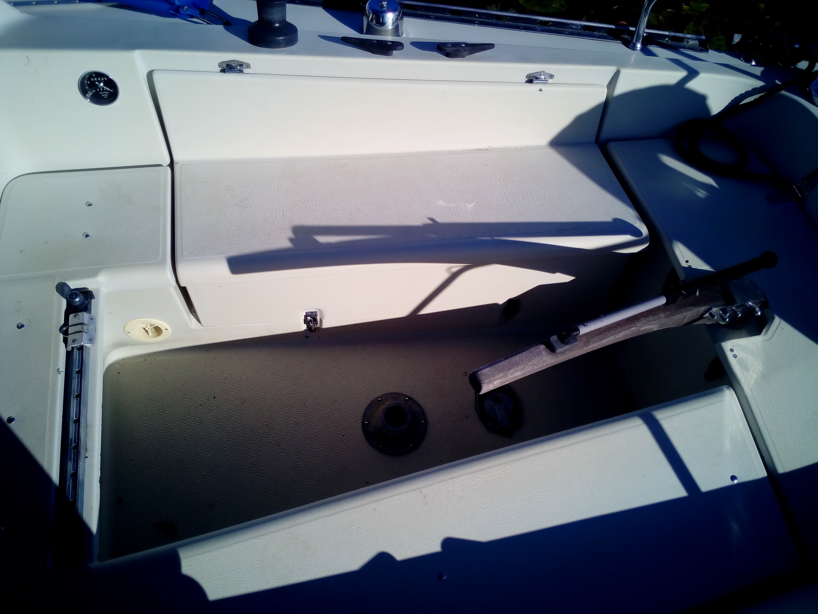 Пришли в яхт-клуб, там нас встретил сын хозяина. Яхта была уже поднята на берег. С одной стороны это даже хорошо – можно осмотреть днище. Первое впечатление - лодка гораздо больше, чем ожидалось от 26-ти футов. Так как настроен я был скептически, подойдя к лодке я начал вяло колупать пальчиком необрастайку с надеждой, что сейчас я найду несколько пятен осмоса и на этом осмотр мы закончим, во внутрь даже не заглядывая. Ну, что зря терять время? К моему удивлению никаких признаков осмоса найти мне не удалось. Более того, толстый слой необрастайки говорил о том, что никаких восстановительных работ на днище за последние лет 10 точно не проводилось. Т.е. это не то, что осмос замазан и закрашен, этот пластик просто не подвержен осмосу! Ладно, посмотрим палубу. А палуба повергла в легкий шок. Было ощущение, что лодка просто новая. Спустились в каюту – и тут просто глазам не верится. Да, видно, что она не новая, есть легкие потертости лака на отдельных деревянных деталях, но в целом лодка живая! Бери и езжай. Кроме того, лодка невероятно широкая - 3м для такой длины - это очень чувствуется. Например, камбуз по левому борту Г-образный, а диван в кают-компании по левому борту П-образный, а не просто вытянут вдоль борта. Единственный видимый минус – это гальюнофорпик. А хозяин тем временем рассказывает, что гальюн кроме слива за борт оборудован еще и танком из нержавейки, который расположен под койкой форпика – еще один плюс. «А как спать на танке? Не воняет?» «А мы там не спим!» «А где спите?» И тут хозяин демонстрирует возможности стола в кают-компании. Он не просто имеет откидные части, но может по пиллерсу подниматься под подволок или наоборот, опускаться до уровня П-образного дивана, образуя таким образом отличное двуспальное место! Ух ты, так это же в принципе меняет концепцию! Форпик – это не жилое помещение, а гальюн с большой кладовкой! А кают-компания на ночь трансформируется в спальню. Чувствую, что эта лодочка затягивает меня все больше. Советуемся с женой – ей тоже все очень нравится. Дальше пошли еще плюсики – двух конфорочная плита с поддоном из нержавейки, мойка с двумя кранами с ножным приводом – один для забортной воды, другой для воды из танка. Керосиновый обогреватель на 2кВт и огромное количество всяких полезностей в виде, канатов, блочков, разнообразных запчастей, слесарных и навигационных инструментов, авторулевой и пр. Также вместе с лодкой отдают зимний тент, каркас под этот тент и кильблок. И цена за все это 21000 крон! Короче, в какой-то момент я понимаю, что я уже просто влюблен в эту лодочку и решение внутри меня уже созрело. Это то, что надо!