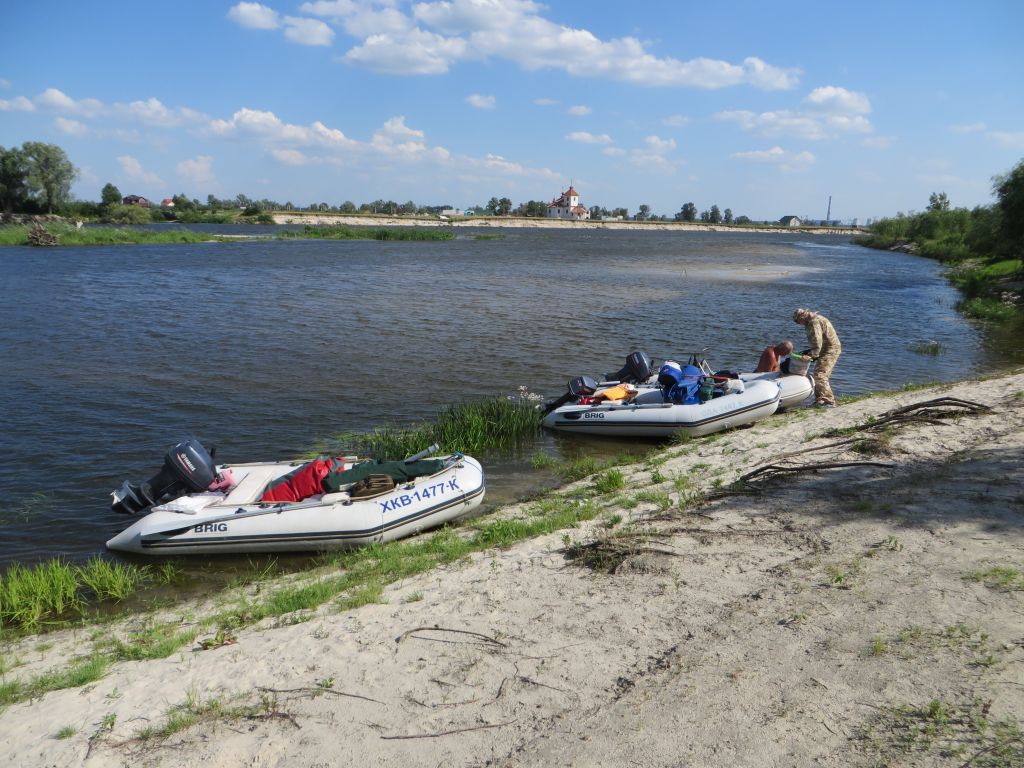 Шли тремя лодками - Бриг Д330W под Я-8 2т., Гранд-330 под Я-15 2т. и Бриг Д330 под Я-15 2т.. Сначала мы машинами приехали в Киев, оставили машины в Киеве на базе недалеко от впадения Десны в Днепр, перегрузили вещи в микроавтобус, который довёз наз в п.Гремяч около границы с россией на р.Судость по которой мы вошли в Десну, а перед Киевом вышли из Десны в Днепр. Весь поход занял 8 дней от момента выезда из Одессы и Харькова и до момента приезда назад в Одессу и Харьков(с 23.06 по 30.06.2017г.). На воде мы были с 24.06 по 30.06, т.е. 7 дней из них ходовых - 6 дней и один день отдыха. Так же из этих ходовых 6 дней 2 дня были чисто символическими - для того, чтобы не сильно устать первый и последний ходовой день мы прошли по 16-18км.. Остальные 4 дня мы проходили по 120-180км в день. Мы шли со скоростью от 26 до 31км\ч, но старались держать 27-28км\ч. На наших лодках расход варьировался от 13,7 до 17л\100км. Из потерь - несколько раз влетали в мели, но всё обходилось. Одна лодка налетела мотором на что-то бетонное или металлическое, итог - отбитый кусочек пера на Я-15. Больше особых происшествий не было. Сильно пугали мелями от Леток до Пуховки. Мели были и много, но никакого особого дискомфорта они нам не доставили - их было видно и мы легко их обходили. Полная версия отчёта тут: Вся Украинская Десна-2017: отчёт с элементами онлайна