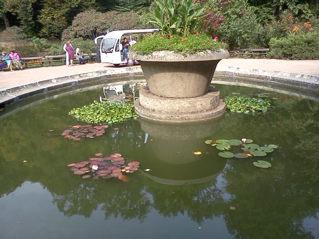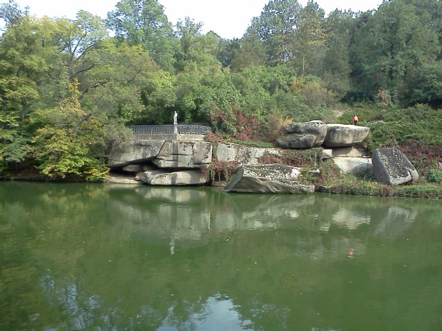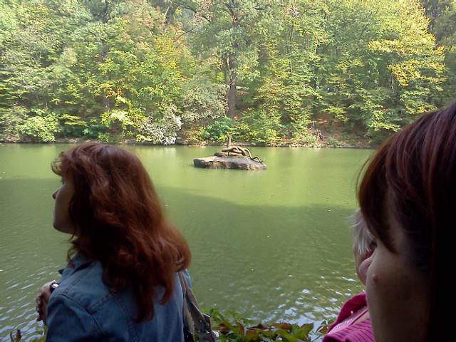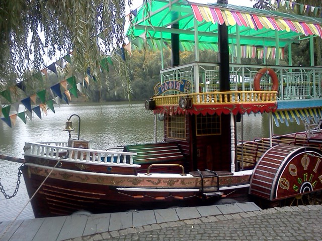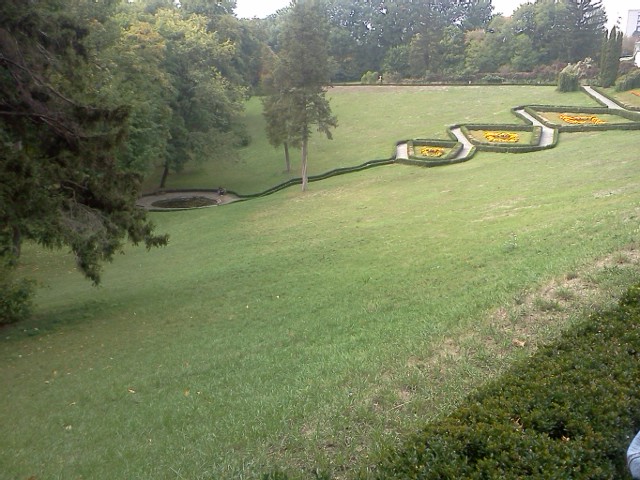 Вобщем , к 11-ти мы приехали в Софийский парк. На площадке с туристическими автобусами, перед входом в парк, слышалось разноголосье иностранцев, садящихся в электромобили для экскурсии по парку; функционировали сувенирные прилавки с подсветкой; музыканты, переодетые в украинские кафтаны 17-го века, играли какой-то старинный польский марш. Есть конная экскурсия по парку. Свадьбы приезжают сюда расписываться среди колоннады стиля барокко и фонтана со статуями змей. Мы пошли за экскурсоводом – коренастым дедушкой с чистым украинским диалектом речи жителя Полтавщины. Позже выяснилось, что он научный работник с учёной степенью. Заметная часть наших туристов осела на лавочках возле пруда с чёрными лебедями и достала пиво. Как они ошиблись… Забегу наперёд, что на обратном пути началась гроза, потемнело и водитель отказывался останавливать автобус, дабы страждущие могли похудеть на 2 литра. Под сиденьем было обнаружено ведро и после возникновения угрозы переполнения оного, водитель всё же догадался остановиться . О парке. Это имение графа Потоцкого. Парк назван в честь его молодой красавицы- жены Софьи. Не из одного его уголка не видно всего парка. Здесь широко представлены всяческие прудики с водопадами и кувшинками, старинные арочные мостики, есть аллея деревьев из Южной Америки, посаженных при графе в 18-м веке в эпоху географических открытий. Экскурсовод показал на ядовитый можжевельник и сказал, что если его корiнець подкинуть злому соседу, то он никогда этот кустарник не выведет со своего огорода(((. Показали красное, чёрное и железное дерево. Оно очень крепкое и из него делают шарики к подшипникам яхт, которые не ржавеют. Здесь посажена корабельная сосна, которая тонет в воде. Удивляет, что в старину могли соединять стволы нескольких деревьев в одно дерево. По большому пруду туристов возит маленькийпароходик с гребными колёсами, как в фильме «Волга-волга». (читал КПД винта на 30% выше таких апендиксов техники, как эти колёса). Также туристов катают на настоящей гандоле с Венеции. Особое место занимают «сады камней» по всему парку. Огромными глыбами запружены ручьи, образующие водопады. Экскурсовод рассказал, что Потоцкий заставлял своих крепостных верёвками тягать эти глыбы по парку. На фото есть лежащий в воде огромный прямоугольный камень – он свалился на крестьянина. Так под ним скелет и лежит. Потоцкий разместил по всему парку статуи античных богов, купидонов, русалок… Он иносказательно ими выражал мысль. На месте захоронения его детей, умерших от эпидемии чумы, возведена колонна в виде оплавленной свечи, а 3 каменных льва оберегают их покой. Ещё Виктор Гюго писал, что книга убила зодчество. Раньше люди умели различными стилями зодчества влиять на настроение пришедшего путника (готика, ампир, барокко, постмодерн). На барельефе с персидским царём Киром изображены 7 воинов – это 7 его побед в войне. А при строительстве в Сочи в 30-е годы 17 санаториев, руководители присылали из Москвы палехов – художников, расписывавших до этого церковные соборы. Их стиль был в виде античных храмов с фонтанами. Колхозники попадали в эти высокие потолки с расписанными стенами и спрашивали персонал: - А что в Сочи коммунизм уже наступил? На территории парка есть подземная река Харон, по которой на лодках проводятся экскурсии. Выйдя из мрачной пещеры,