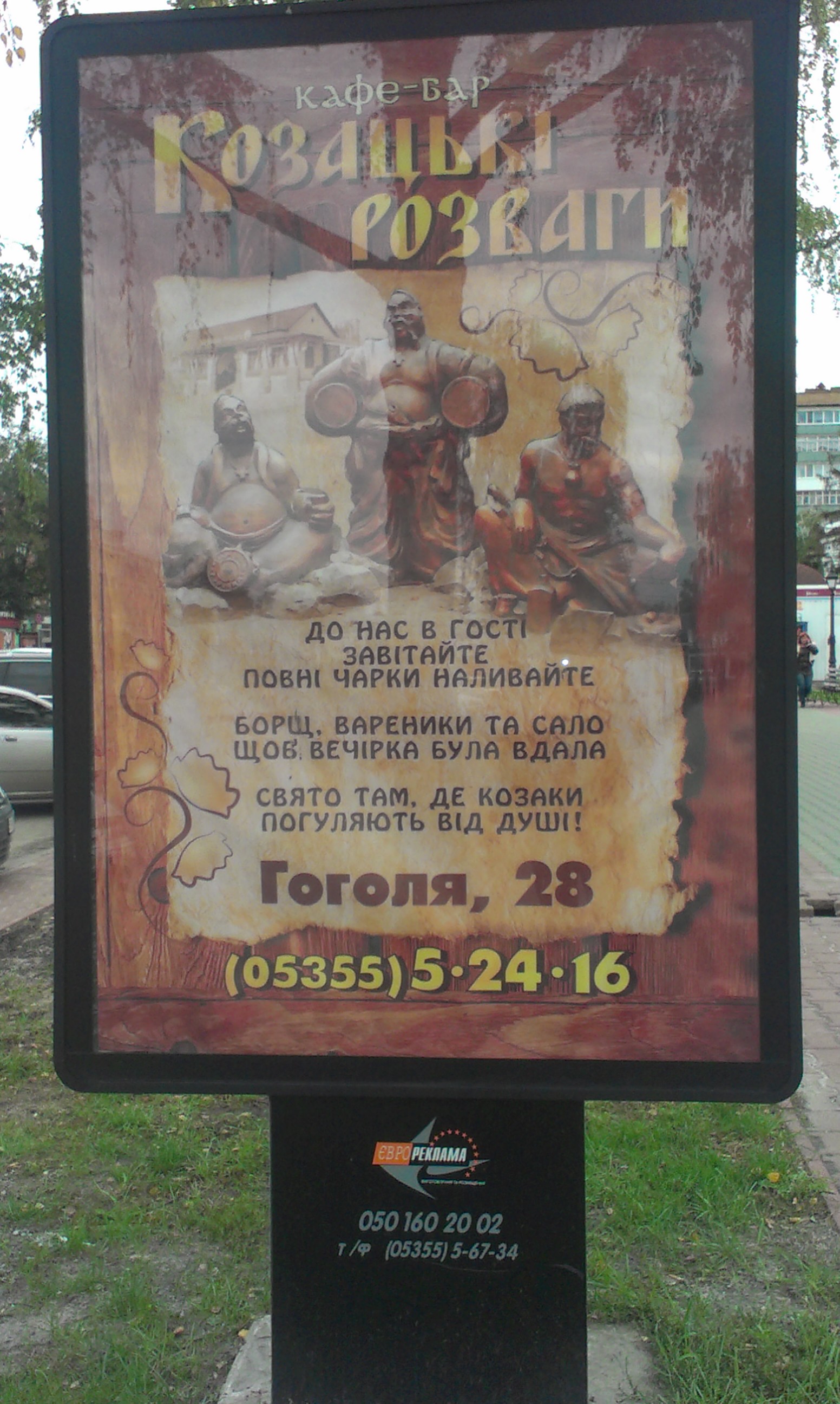 Растояние в 256км было преодолено быстро и успешно. Дорога очень хорошая только кусок после сьезда с Харьковской трассы - так себе неочень. Городок небольшой можно сказать курортный, уютный и очень доброжелательный. Квартира 2-х комнатная 150-250гр. сутки. Достопримечательностей немного но есть. Понравилась алея с памятниками из Гоголевских книг. Был в музее Гоголя, очень интересный типочек этот Гоголь. Есть ресторан Гоголь. Украинский стиль очень отличается от карпатского. Понравилось што люди как и в карпатах могут сделать из всего конфетку. Очень запало оформление ресторана (см фото). финансовая сторона 500-550 км + жилье + культурное времяпроведение=2000-2500. |