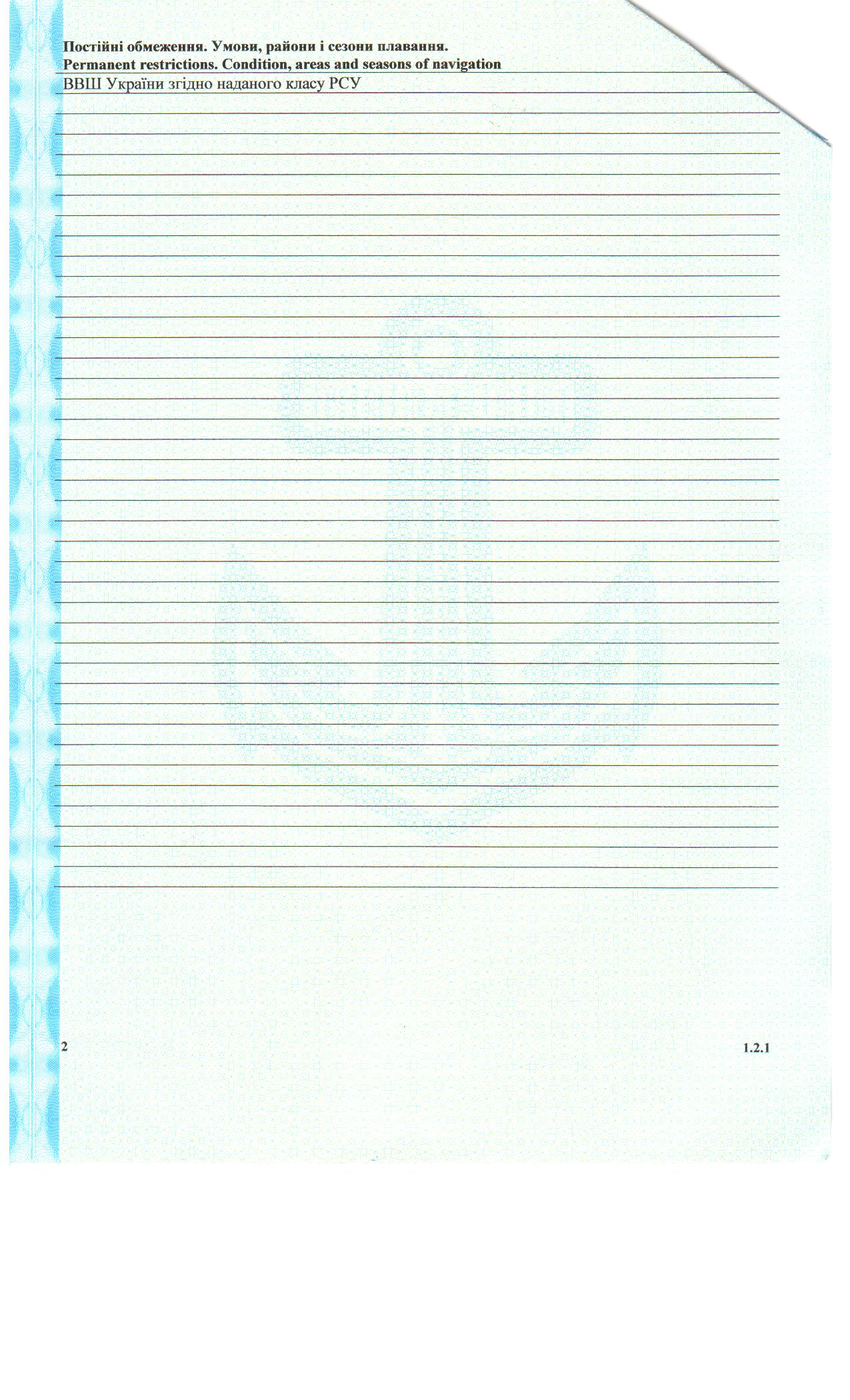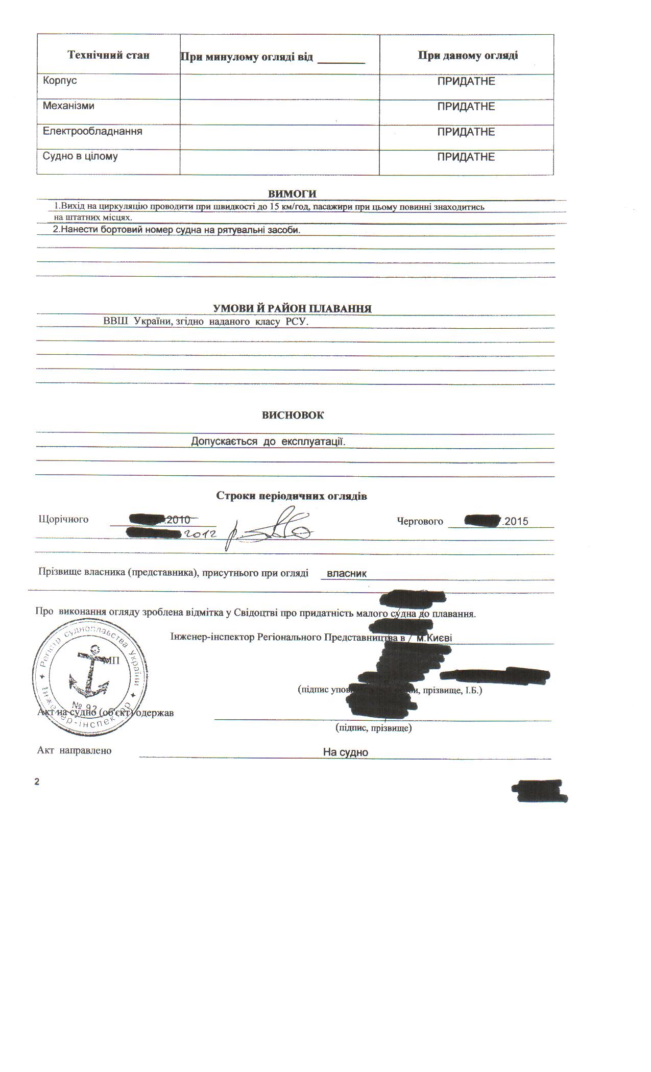 1. Свідоцтво про придатність малого судна до плавання. (обложка, первая и последняя стр.).