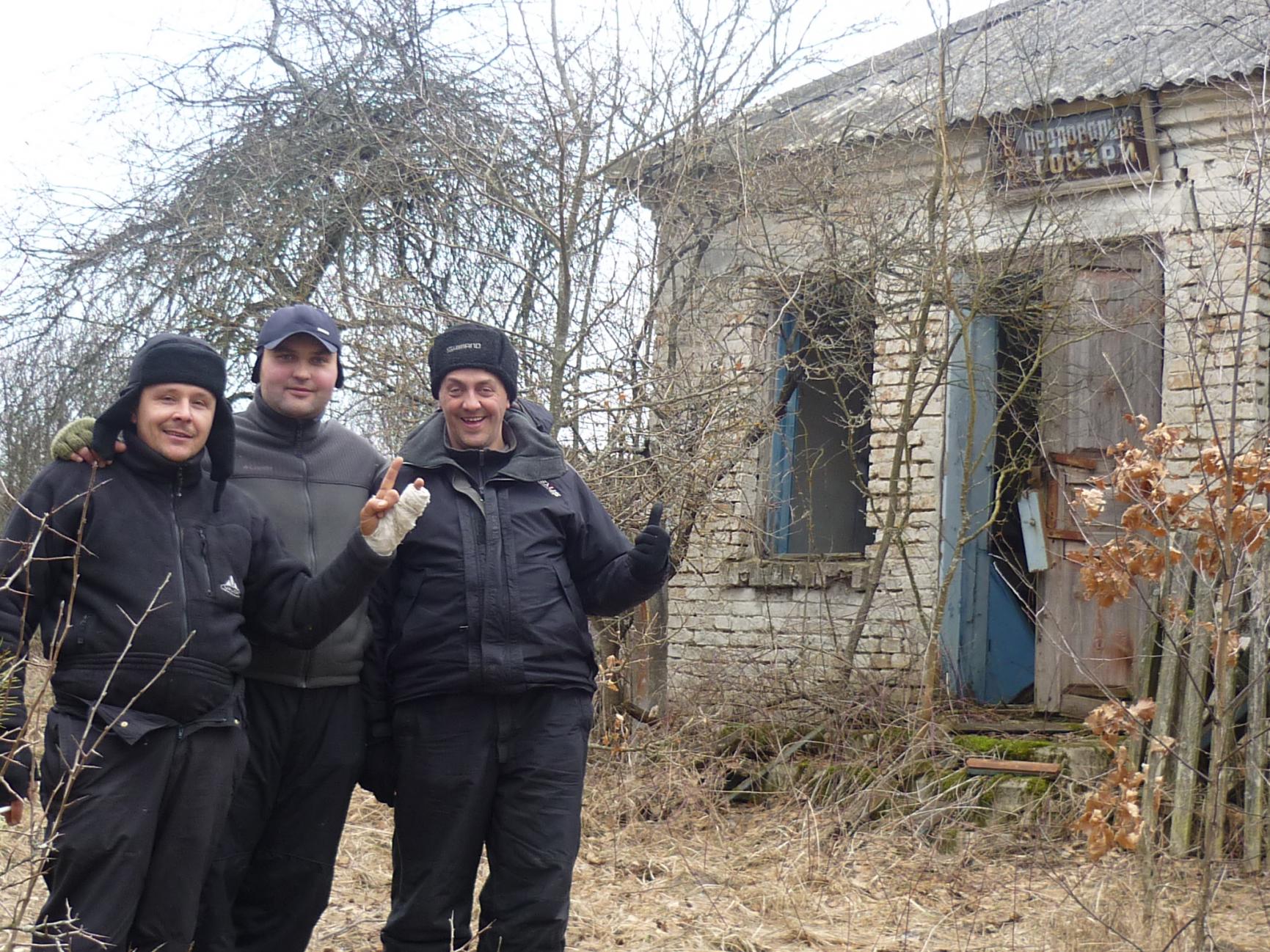 Выходим на лед, сверлим лунку и при первом же касании блесны о дно у одного из нас происходит поклевка, вынимаем сома. В общем рыбы в реке немеряно , всего было поймано семь сомов и пятнадцать судаков. Но я бы хотел рассказать не о рыбалке, а о увиденном в ЗОНЕ. Примерно в обед мы решили сменить место ловли и переместиться на другую речку, мы поехали через какие то поля и леса и въехали в деревню которая находится в лесу на берегу реки. Я начал понимать людей, которые отказывались покидать свои дома, природа там неимоверной красоты. Вся деревня расположена вдоль реки, и даже магазин находится прямо на берегу красивой речки. Деревня вся изрыта кабанами, их там просто огромное количество. Когда едешь по селу начинаешь понимать , что людей выселяли очень поспешно, на крыльце стоят какие то кастрюли, по двору валяются всякие предметы быта, а детский мячик который валялся во дворе поверг меня в шок. Шифер на одном из домов сорвало ветром, и видно, что там до сих пор лежит сено, которое когда то было заготовлено, деревянные столбы на которых когда то висели провода все сгнили, остались только железобетонные подпорки к которым эти столбы когда то привязывали. Картина на самом деле жуткая и ты начинаешь понимать масштабы той катастрофы которая произошла. Возвращаясь домой , мы увидели как дорогу переходит лошадь Пржевальского, остановились и увидели , что на поле их целое стадо, форумчанин сказал , что в зоне находится самое большое стадо в Европе этих диких животных.
