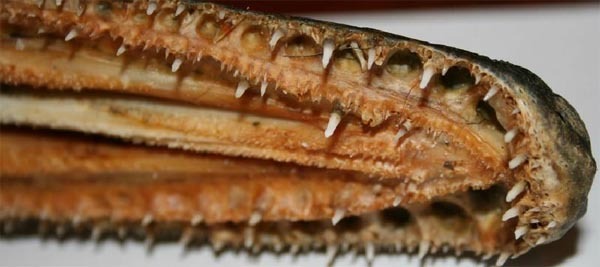 . Вчера смотрел по дискавери фильмец про очень интерестную рыбку, не дай бог такие у нас появяться, кашмарная рыбешка, с возможностью дыхания атмосферным воздухом около 2х часов . Возростом около 150 мил. лет, ровестник динозавров По внешнему виду панцирники несколько напоминают обыкновенную щуку, поэтому их и называют панцирниковыми щуками. Это крупные рыбы, достигающие в длину 3 м и массы свыше 130 кг. Тело у них удлиненное, вальковатое. У взрослых рыб оно покрыто костными чешуями в виде крупных ромбовидных щитков, верхний слой которых содержит эмалеподобное вещество ганоин. Чешуи не налегают друг на друга, а большая их часть соединяется между собой посредством особых сочленений, образуя сплошной и прочный панцирь. Такие же чешуи есть по бокам головы. Веществом ганоином покрыты также и покровные кости головы. Рыло у панцирников сильно вытянуто и внешне, особенно у крупных рыб, напоминает морду крокодила. На удлиненных челюстях и на нёбных костях имеются многочисленные крепкие и острые конические зубы, а ноздри расположены на самом конце удлиненного рыла. За это панцирников ещё называют каймановыми рыбами или рыбами-аллигаторами (Alligator gar). Позвоночник у панцирников полностью окостеневший, тела позвонков опистоцельные (выпуклые спереди и вогнутые сзади). Такое строение позвонков никогда не встречается у других рыб, а характерно только для хвостатых амфибий и птиц. Плавательный пузырь у панцирников имеет ячеистую структуру и соединяется с глоткой сверху, что обеспечивает возможность атмосферного дыхания и позволяет панцирникам обитать даже в водоемах с низким содержанием кислорода в воде. В кишечнике у панцирниковых рыб имеется недоразвитый спиральный клапан, а в сердце – артериальный конус с поперечными рядами клапанов, что характерно для акул, скатов и осетровых рыб. Спинной и анальный плавники противостоят друг другу и отодвинуты далеко назад, брюшные плавники абдоминальные, расположены в средней части брюха. Хвостовой плавник укорочено гетероцеркальный с загнутым кверху окончанием позвоночника. Внешний вид, пропорции головы и рыла у панцирников сильно изменяются с возрастом, из-за чего рыбы разных возрастов и размеров выглядят как отдельные виды. Икра всех панцирниковых щук ядовита |