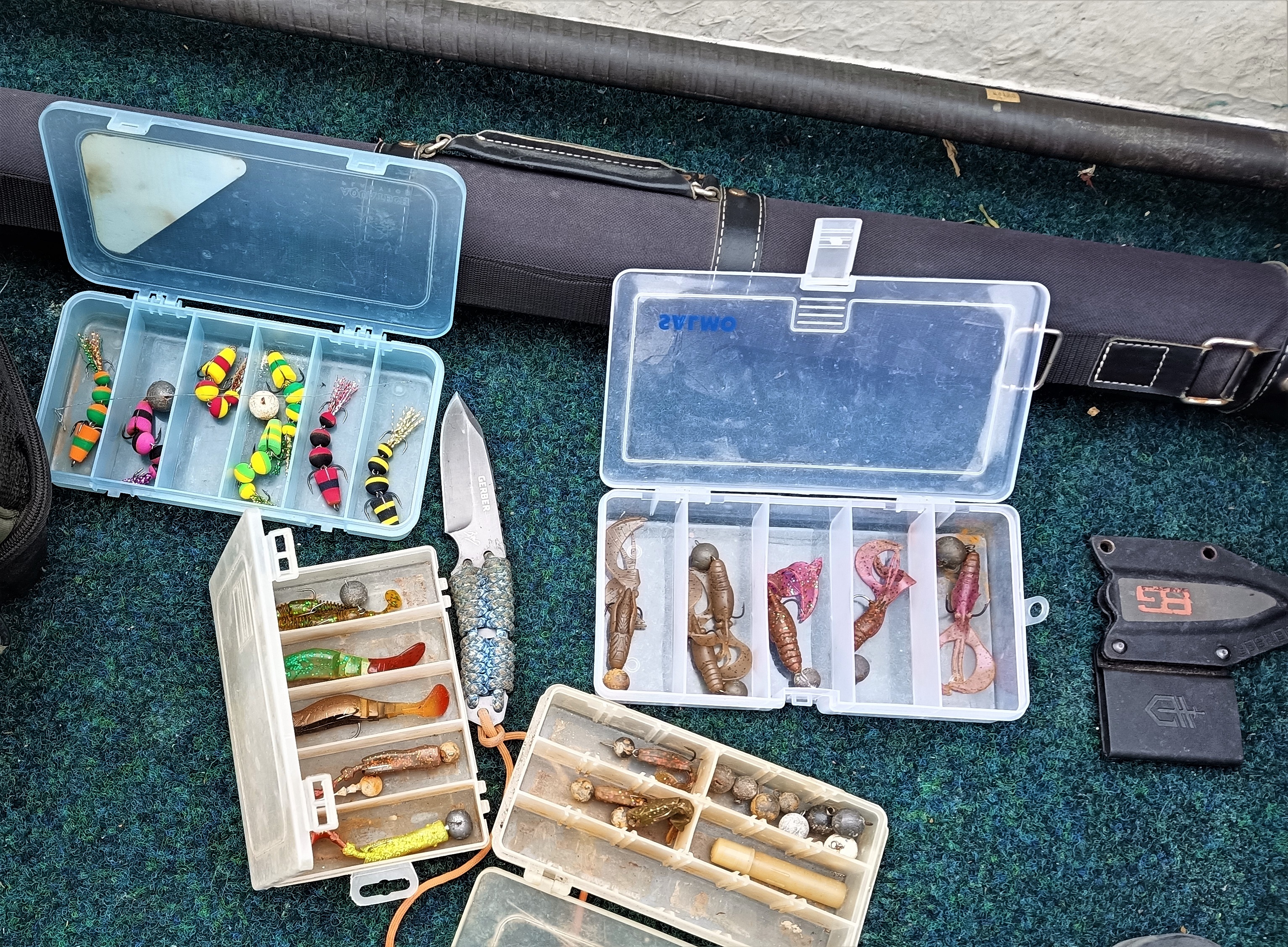 Взял с собой то, что на фото (и ещё в сумке пару коробок "мастеров"), но "мастера" не полоскал, чтобы не тратить время на отцеплялки, и маленькие релаксы не купал.
