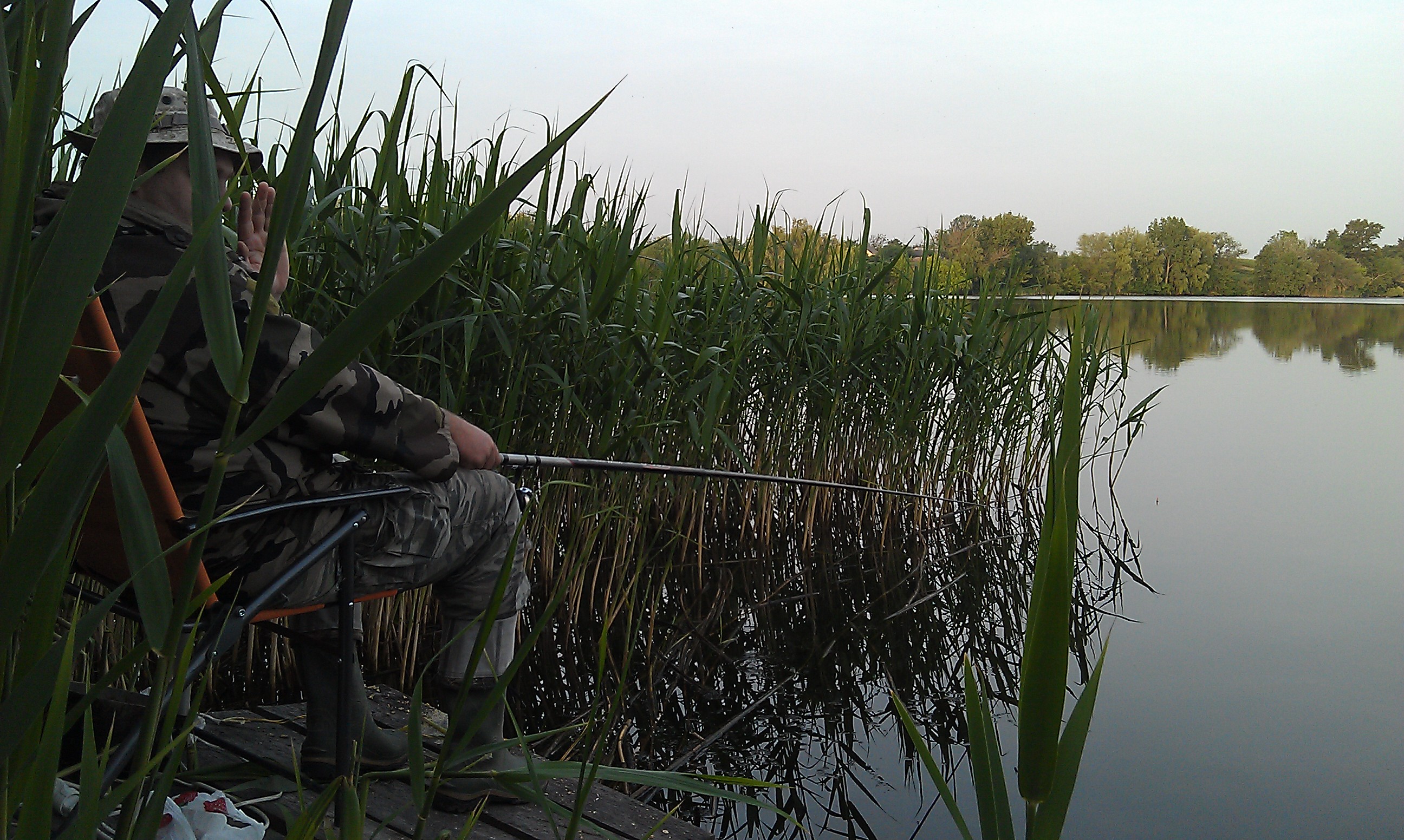 На рассвете засели уже основательно... Штиль, жабы - истерички несчастные... еще ж и громкие такие... В общем ловим... Белый - красный... мастырки - фигирки... а ловятся одни сипильдявки... плотвиной наружности... Пару плотвиц ниче, а остальное - полный сипильдявочник и никакого карася... хотя по камышам у него такой группен секс, будто раненый Чапай из Урала на берег ломится... причем сюдя по хлюпам - с конем вместе