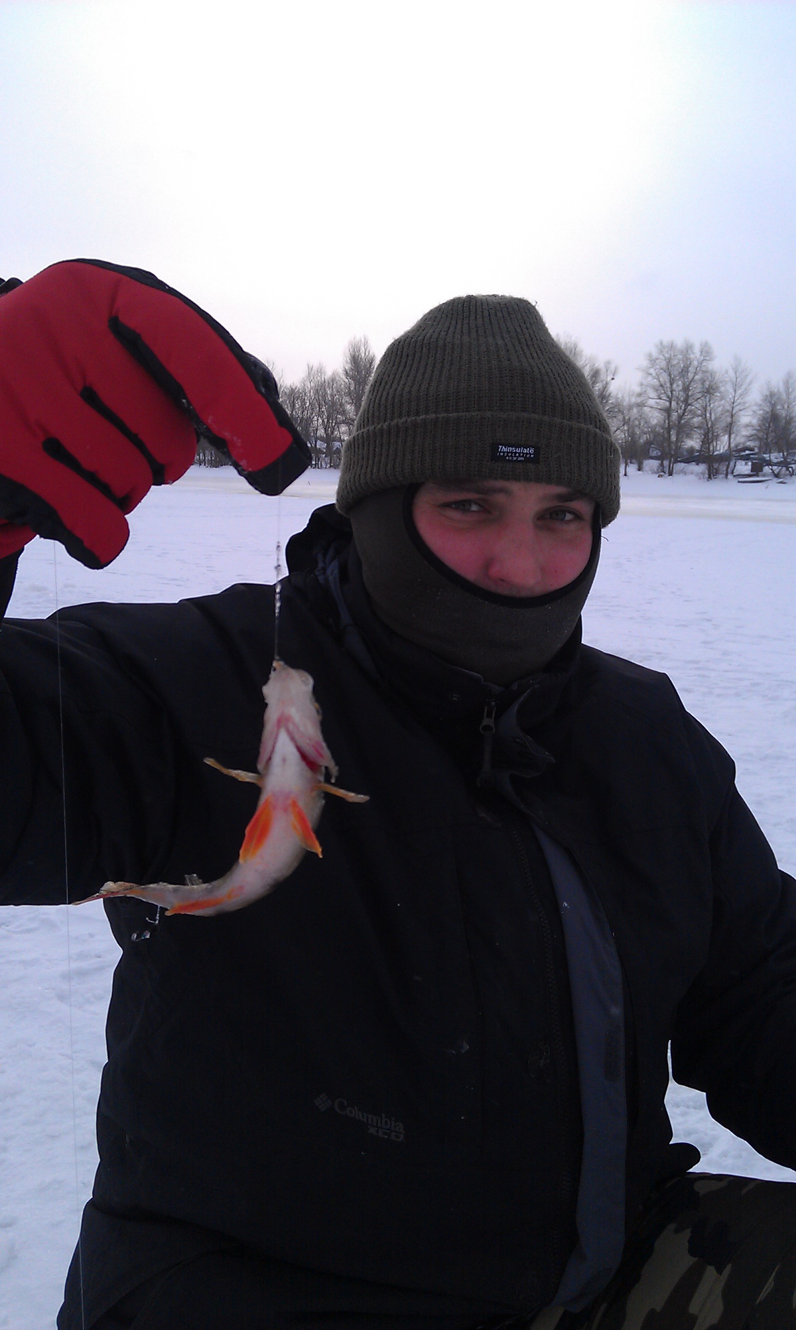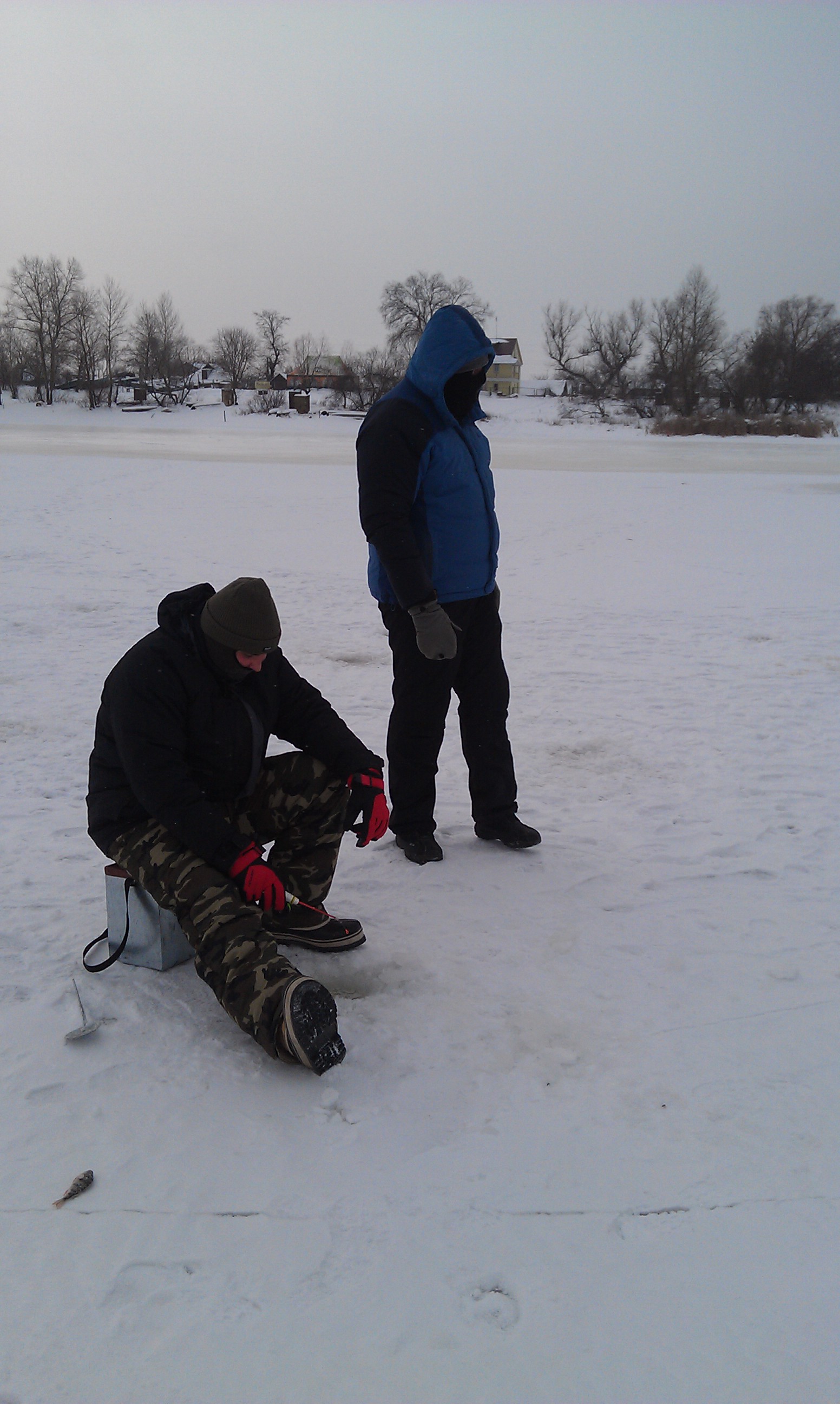 В связи с тем, что лед стал крепким, решил я с друзьями и коллегами выехать на зимнюю рыбалку. Решено было ехать в Хрещатик, так как база там теплая и до воды не далеко. Пробурив первую лунку, сразу же клюнул судачек, сантиметров 10, моментально был отпущен, после него второй, таких же размеров, утопили его в лунке, местные хапуги такого судака оставляют себе, так и хотелось подойти и дать пешней по голове. Окуня было видимо не видимо, весь мелкий, задолбались отпускать, правда штук 20-30 все же взяли себе на уху. Время провели великолепно, не взирая на морозы, в субботу утром было -19, в воскресенье с утра пошел снег.