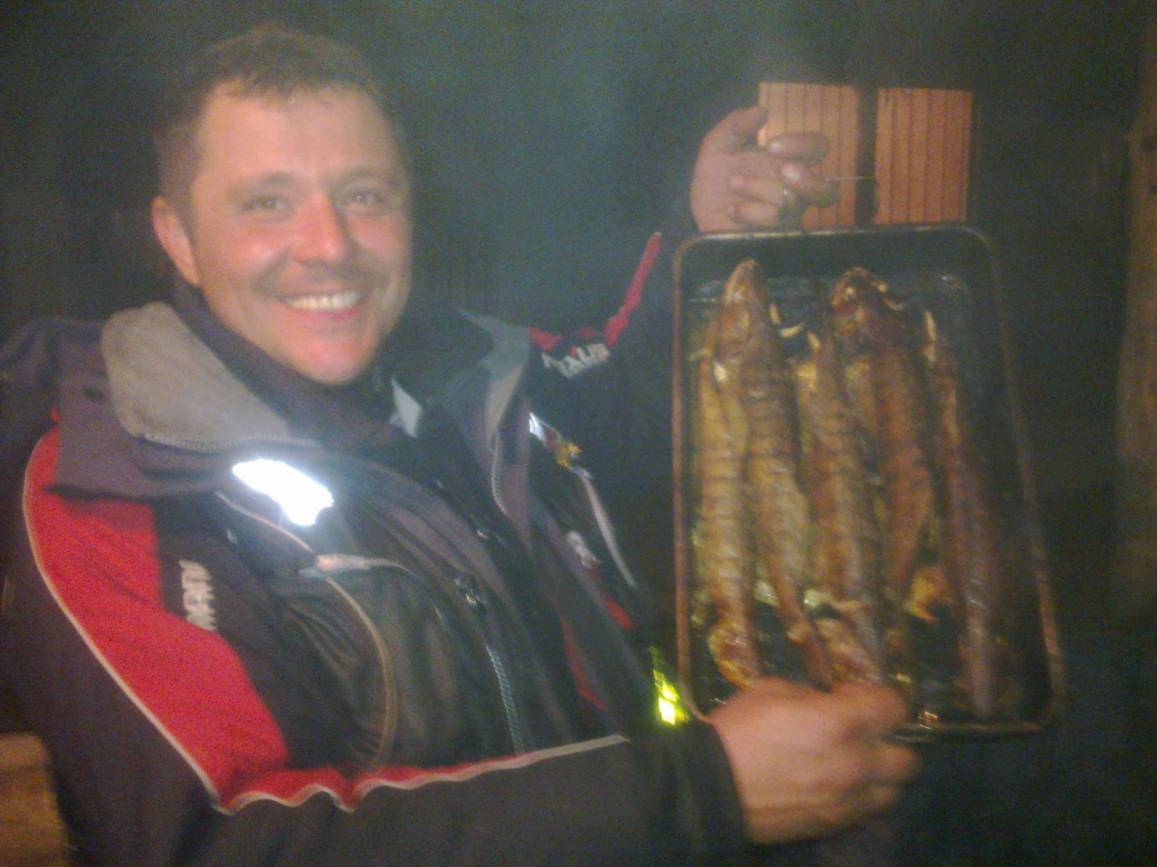 Начну помолясь... Хотя до финиша еще ой как далеко... Может я не писатель??? ![]() Четверг 28 октября 2010 года. Приехал ко мне мой друг Валера и предложил съездить на рыбалку. Задрала его работа до последней черты. Идея у него была такая - он с женой и внуком "садится" на дом на колесах, я цепляю к Прадику недавно купленный РИБ и двигаем в "неизвестном" направлении. Немного подумав о предложении я решил все-таки подстраховаться. Во-первых я не знаю где живет рыба, ну и во-вторых я не знаю какое направление называется "неизвестным"... Так как Форума под рукой у меня не было решил сделать "звонок другу". Догадываетесь о ком речь идет???? ![]() Короче звоню Андрею Леонидовичу и начинаю пытать про рыбные места и сброс РИБа. Тот не долго думая говорит что тоже мечтает порыбачить, потому подумает и перезвонит через 5 минут. В результате решает что он тоже едет, причем не сам а с владельцем (зовут Олег) роскошного места на берегу Днепра со своим спуском на воду и 40-ка футовым контейнером превращенным в домик для проживания. В результате принимаем решение стартовать в пятницу как только сможем по работе. Пятница 29 октября 2010 года. В пятницу планы чуть подкорректировались. Андрей решил ехать с Олегом и Славой СЛ. Валера решил взять с собой своего сотрудника - Сашу, т.к. внук приболел и жена ехать отказалась. Ну и сильно Мы с Валерой не вписались в планируемое время. Итого Бондык и компания выехали в районе часа дня, а нам удалось вырваться только после семнадцати. Размеры пробок описывать не буду, скажу только одно - на место удалось добраться только к 22:00. (надеюсь участники пятничной рыбалки опишут как все прошло) Приехав на место Мы застали превосходно сервированный стол (ну думаю Вы понимаете какой стол могли накрыть три мужика), зато восхитительную копченую рыбу и теплую дружественную компанию. Сбросили РИБ на воду, по третьей, по третьей и разговоры до двух часов ночи. Подъем назначили на 5 часов утра, хотя будильники все поставили на 5:15 Разошлись спать - Андрей, Слава и Олег в "контейнер" а я с Валерой и Сашей в привезенный дом. Суббота 30 октября 2010 года. Первым проснулся Валера. Где-то в 5:10. Пока я раздуплялся вставать или нет зазвонил будильник. Пришлось вставать. Зашел в прихожую "контейнера", дверь в комнату открыть не удалось зато попадали какие-то ведра. Шума наделал немало, но в ответ тишина... Сходил в "дом" за телефоном и, подсветив, таки прорвался в комнату. В комнате играли все три будильника но народ даже не тянулся их выключать, не говоря о том чтобы вставать. Безуспешно попытался поднять народ... потом, побродив минут пять по территории решил идти досыпать. Пока устраивался в спальнике "ворвался" проснувшийся Бондык. Пришлось опять вставать... %) Определили экипажи: Бондык и Олег на Южанке с 15-м Мерком, Я, Валера и Слава СЛ на РИБе. (Саша приехал с костюмом для подводного плавания и решено было оставить его на базе). Дальше легкий перекус и попытка старта на место рыбалки. А не тут то было. Движок на РИБе (Эвинруд 60 доисторический) заводился с пол оборота, однако мгновенно набирал максимальные обороты и не хотел их сбрасывать. Пришлось Анрею засучать рукава. Забегая вперед скажу что воевать с движком пришлось весть день, Андрей "сбил" руки, потянул одну из рук, но из борьбы этой вышел с честью. (Правда весь день матерился на Сер-а, ну типа это его работа...) (в связи с загадо