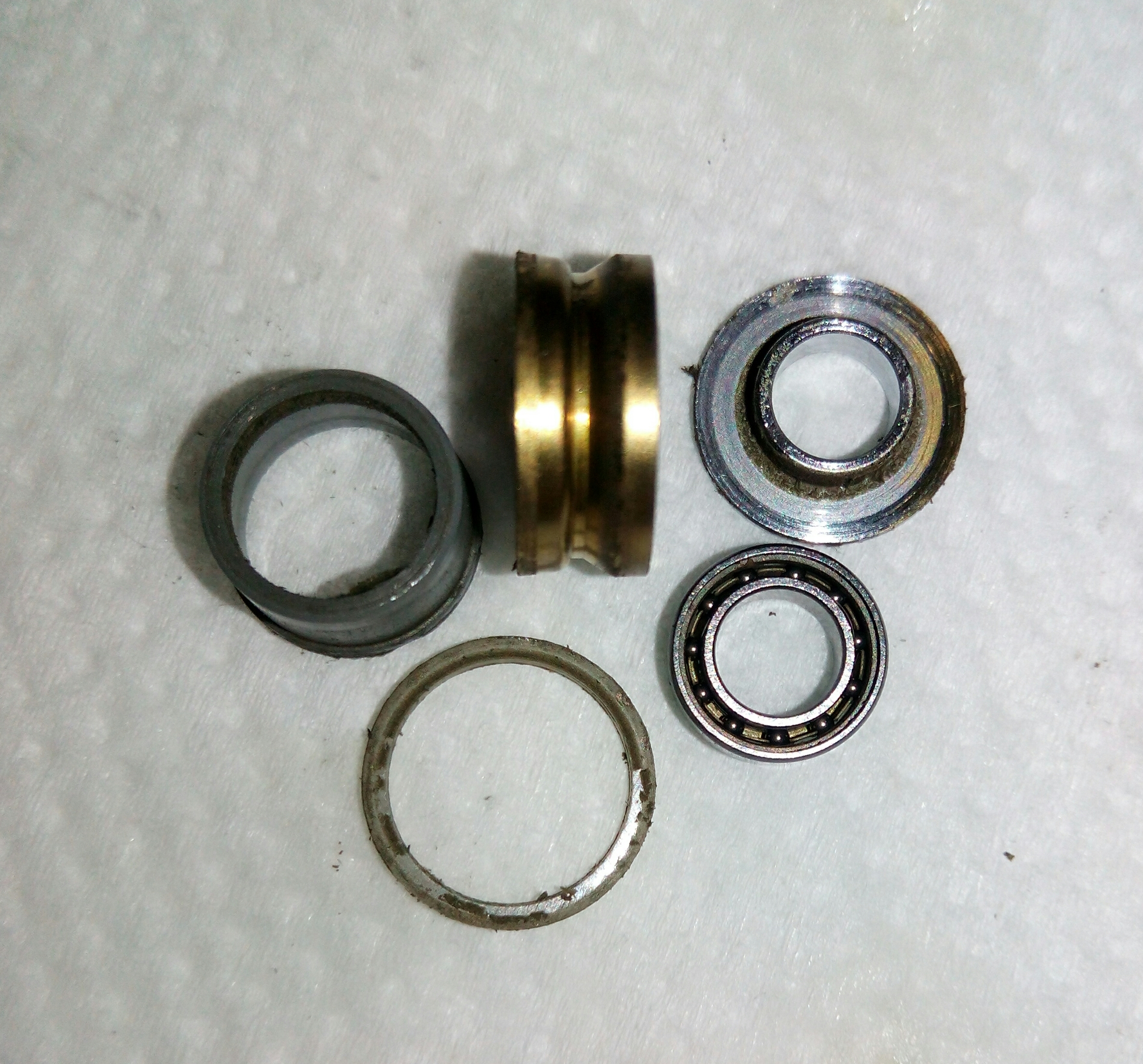 Катушка Shimano Technium 2500FA. Ход катушки был очень тугой, по инерции ротор делал максимум 1,5-2 оборота и резко останавливался. ГП была сильно зажата между собой. Внутри корпуса много лишней смазки, которая тоже притормаживала ход катушки. Так же дужка л/у как пружина сильно распирала в стороны коромысла ротора, соответственно было сопротивление при её отбрасывании, и в посадочных гнёздах пошла косая выработка (ранее писал об этом, пост 64). После того, как всё устранил и смазал новой смазкой, катушка стала крутиться на много легче. Хоть она и не обладает лёгким стартом, но тем не менее ход лёгкий, плавный и в относительно тихий.