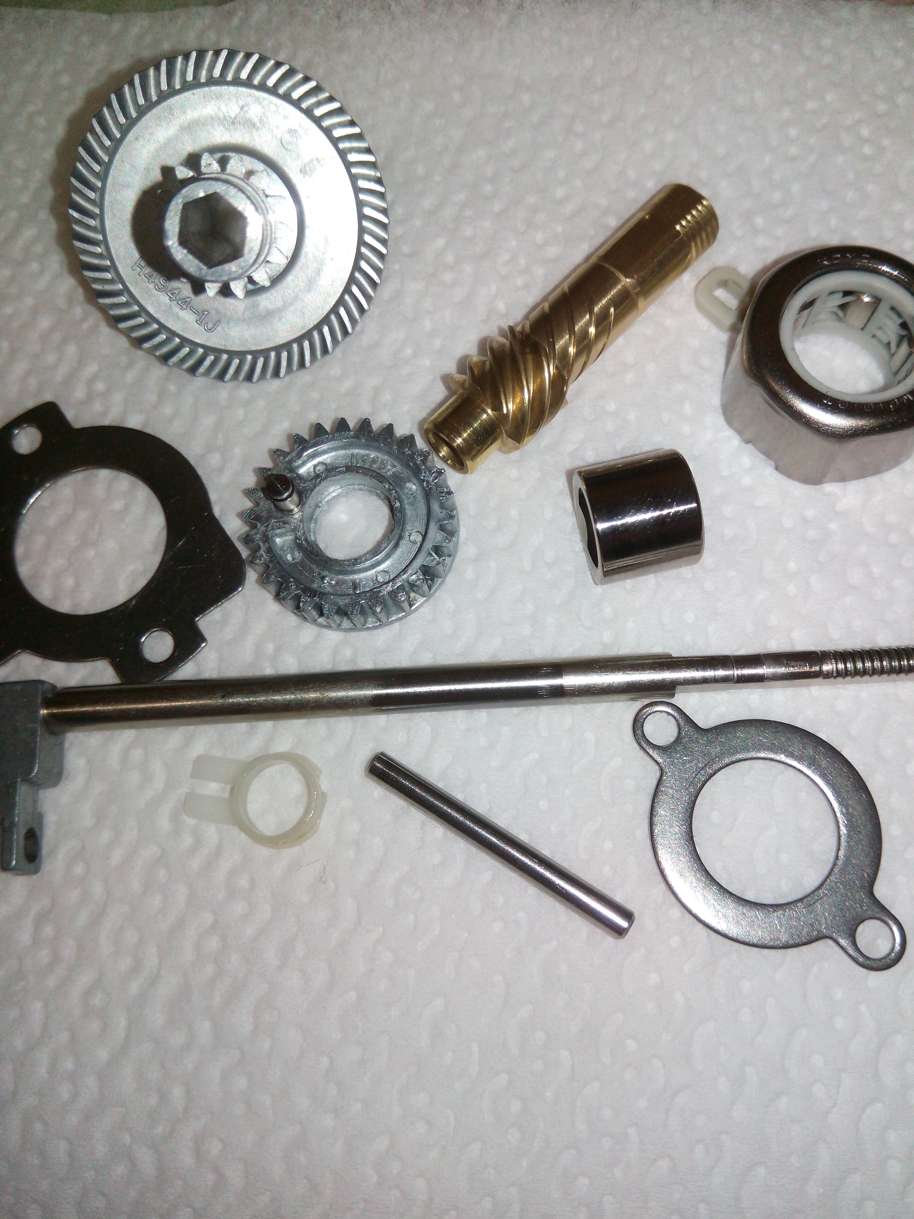 и шея свёрнута в виде сорванной резьбы на ведомой шестерне. Наверное мастер старался открутить гайку ротора, но крутил в другую сторону, так как здесь левая резьба (вернее была левая, сейчас она двухсторонняя)))) Шайба регулировочная в два раза больше чем сам подшипник. Кстати, когда летом в жару цветёт Днепр, то на поверхности воды образуется зелёная плёнка толщиной в палец. Так вот, наверное эту зелёнку собрали и использовали в данной катушке вместо смазки))) На ведущей есть не равномерный износ, не критичный, но есть. И это уже сказывается на работе катушки. Даже после промывки, новой смазки и регулировки ГП звук работы шестерней в виде глухого рыка остался.