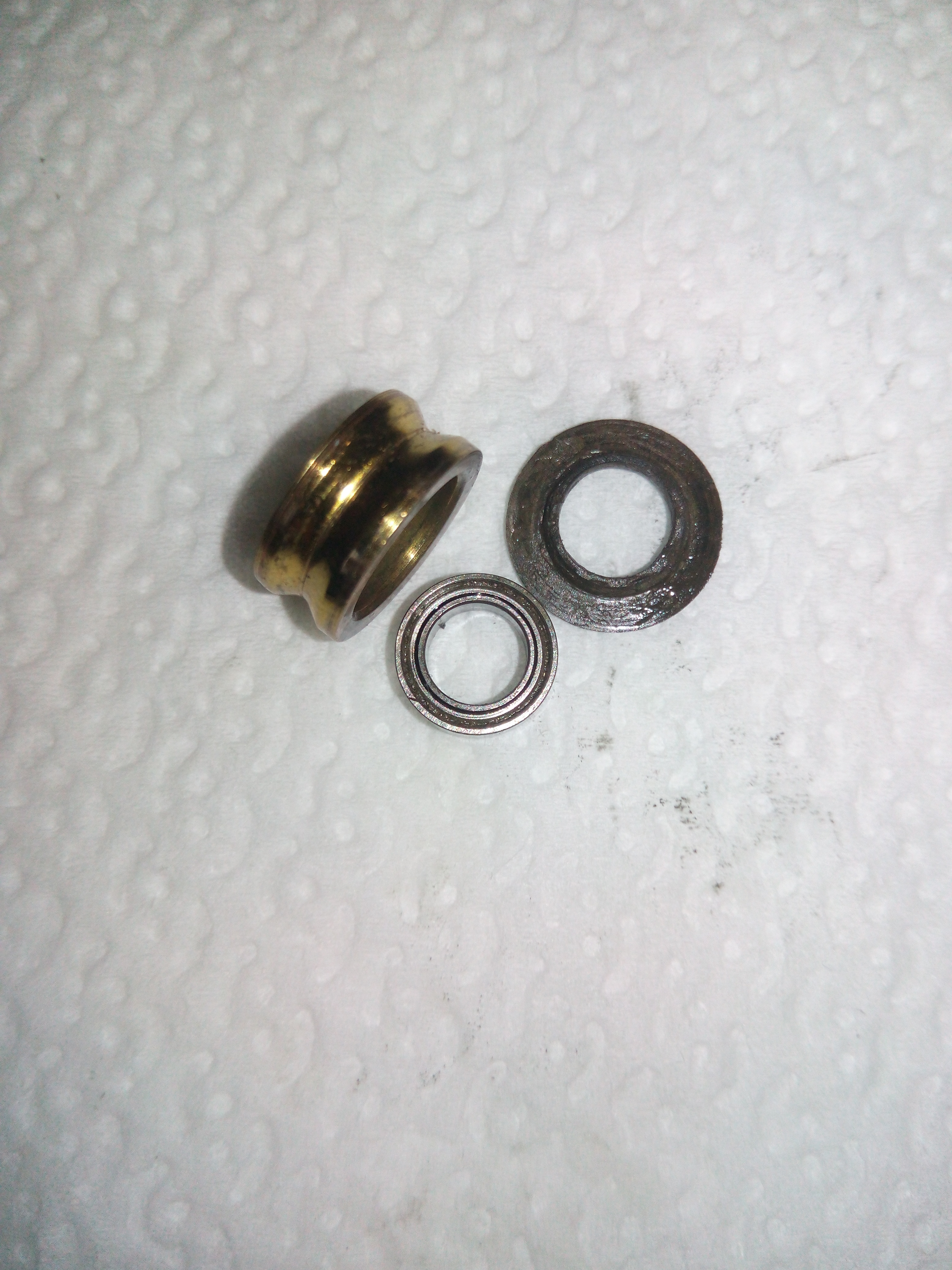 Что касается катушки: люфт ГП, люфты держателей дужки, торохтящий приличный люфт кноба и самой рукоятки в суставе и на оси. Смазка уже была больше похожа на парафин. Износ ГП отсутствует, есть лёгкая притирка шестерней. Втулка в ролике л/у заменена на подшипник. Фрикционная шайба была уже "сгоревшая". Все недостатки и люфты устранены. Сейчас катушка будет работать лучше чем новая.