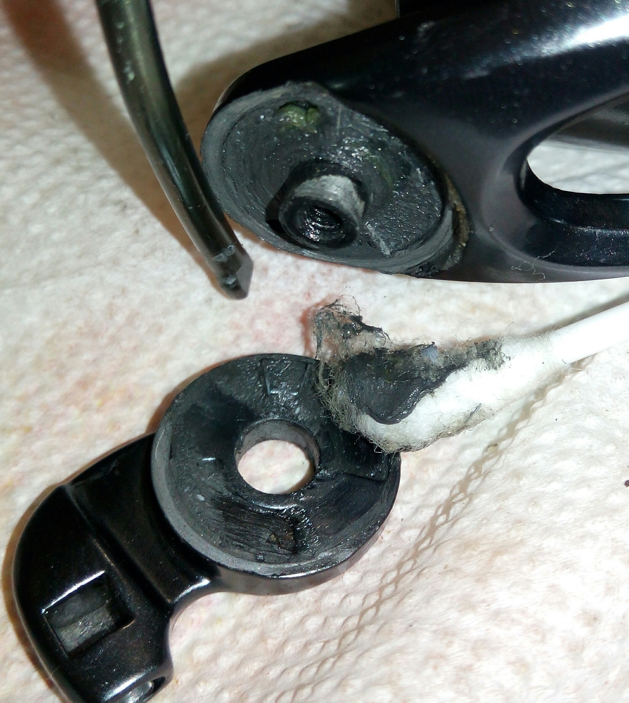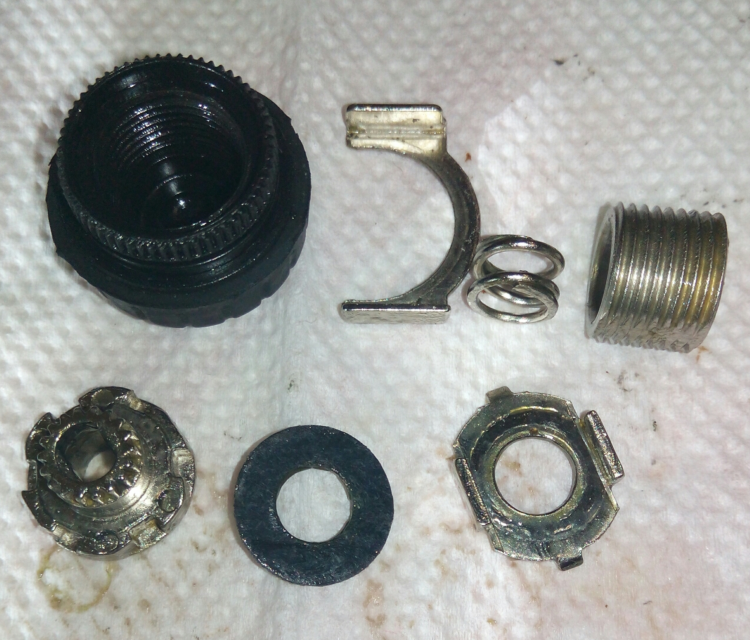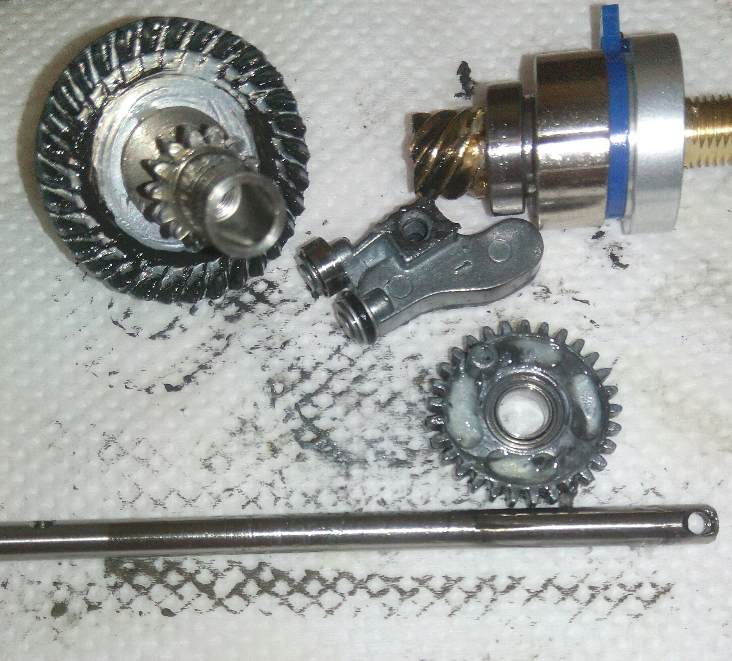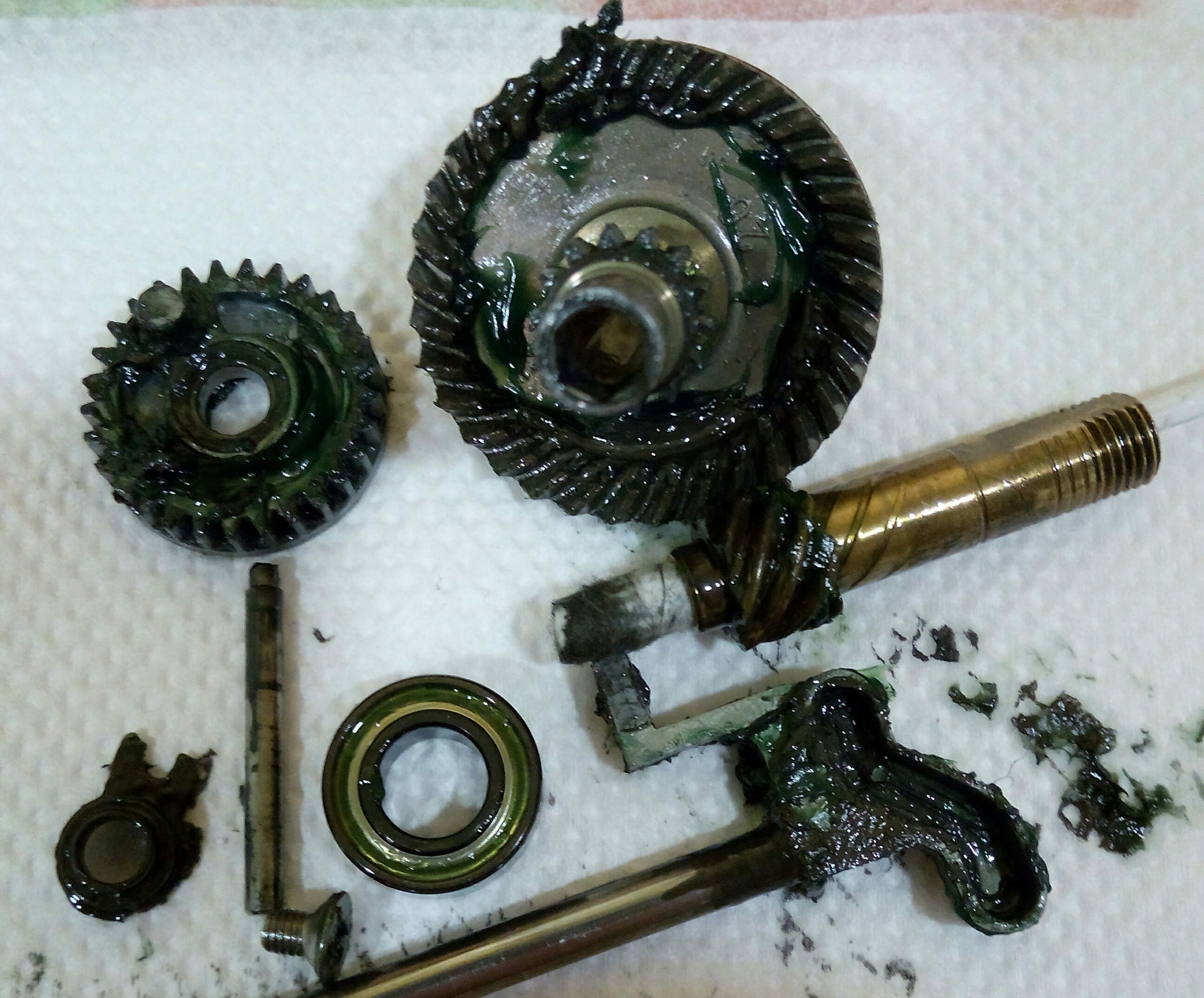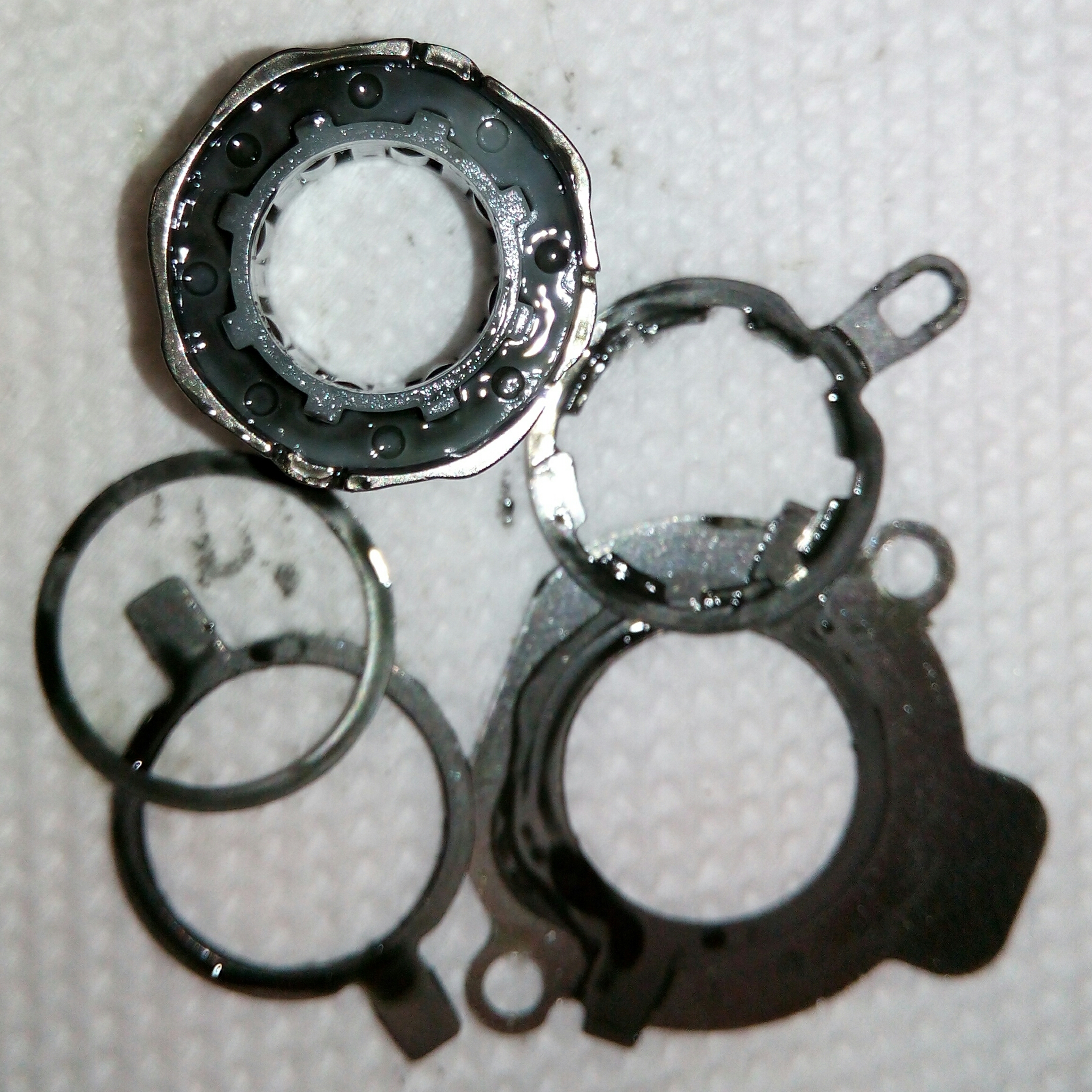 Катушка Okuma Longbow. Крутилась очень туго, по ощущениям напоминала забившуюся ручную мясорубку. Не удивительно, так как эта катушка случайно провела не определённое время на дне реки. В итоге три ржавых заклинивших подшипника: на ведущей шестерне, на ведомой и в ролике л/у. Так же под колпачком на роторе возле пружины поселился какой-то речной жук
