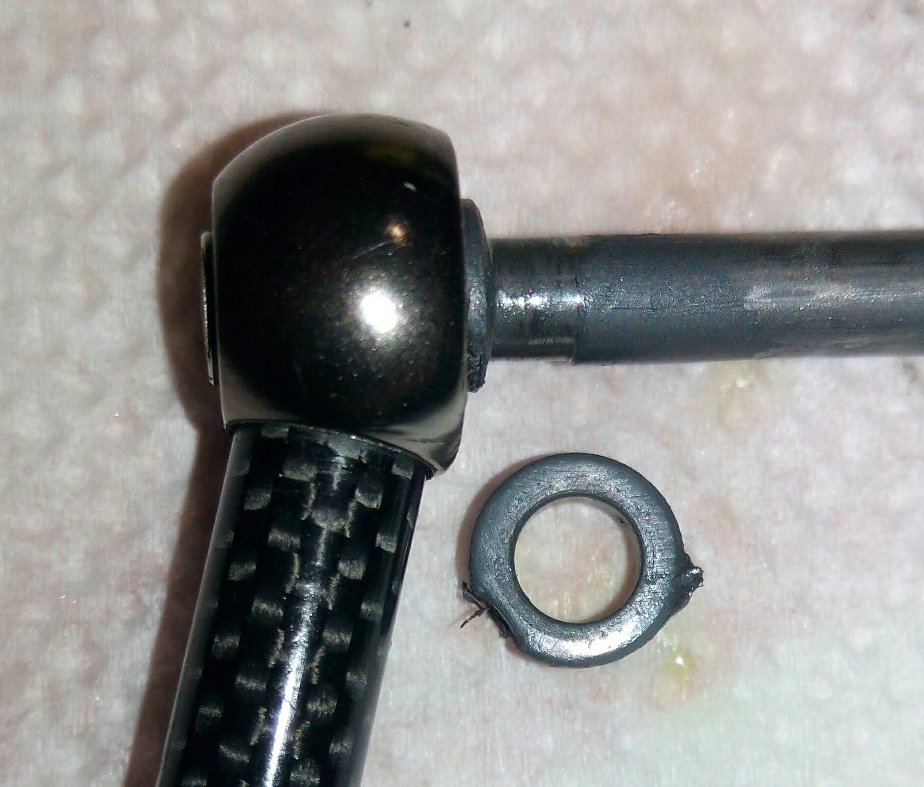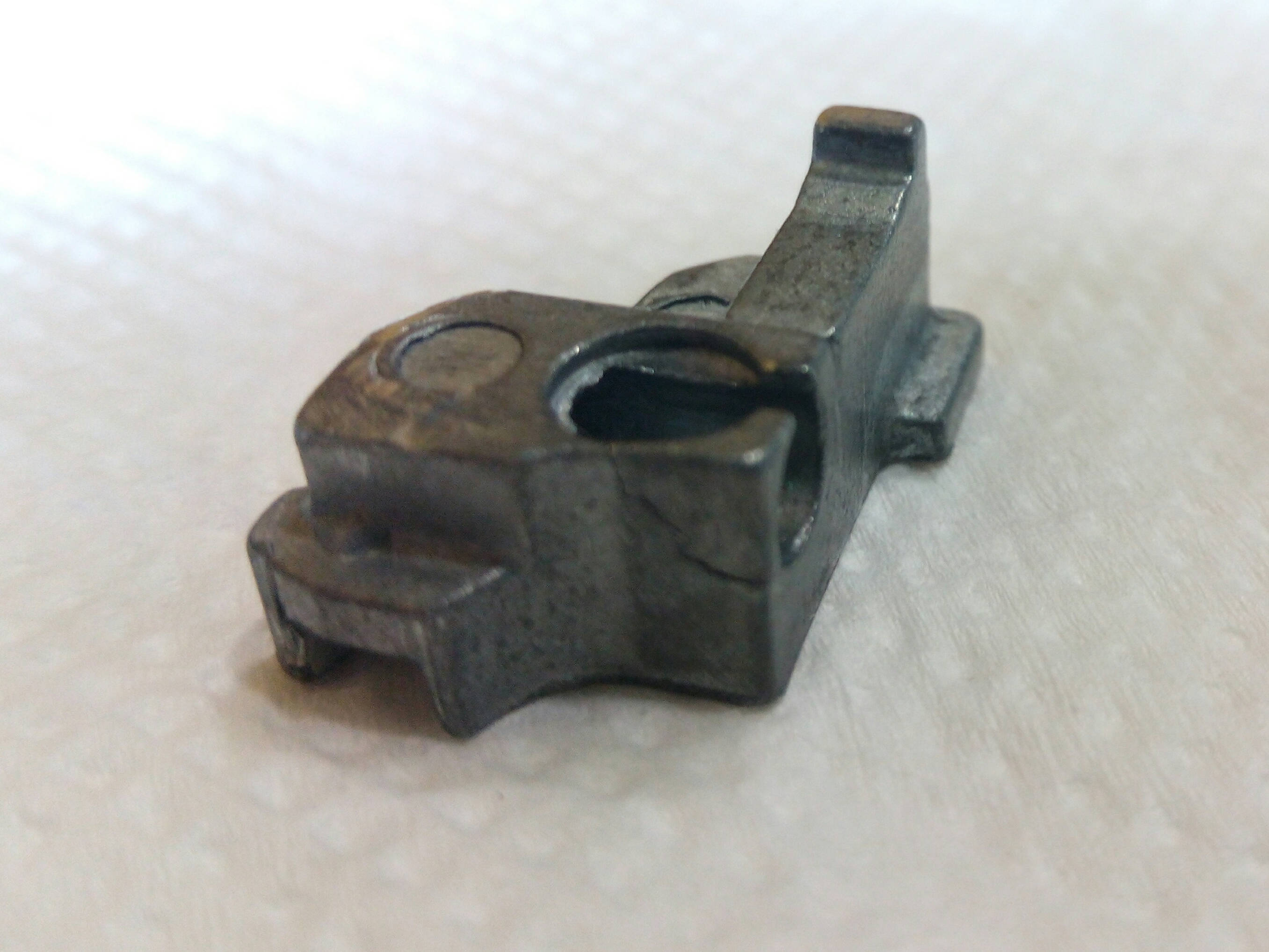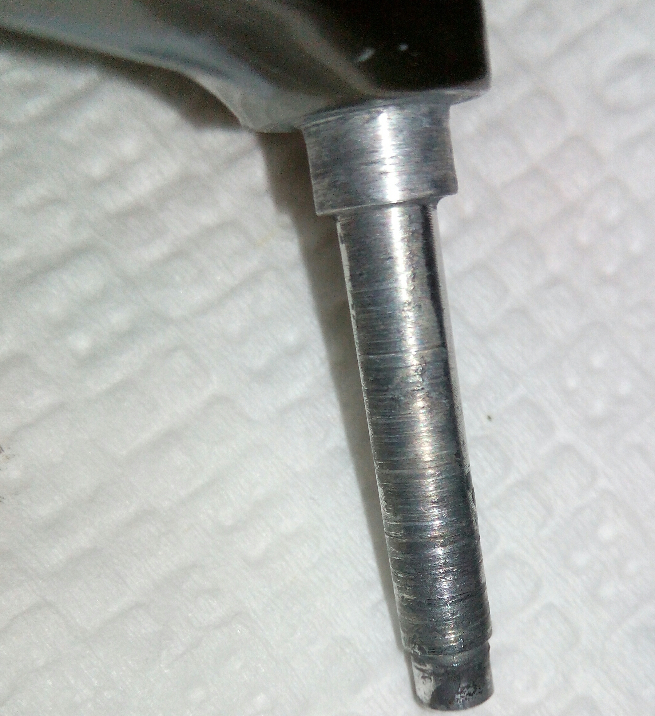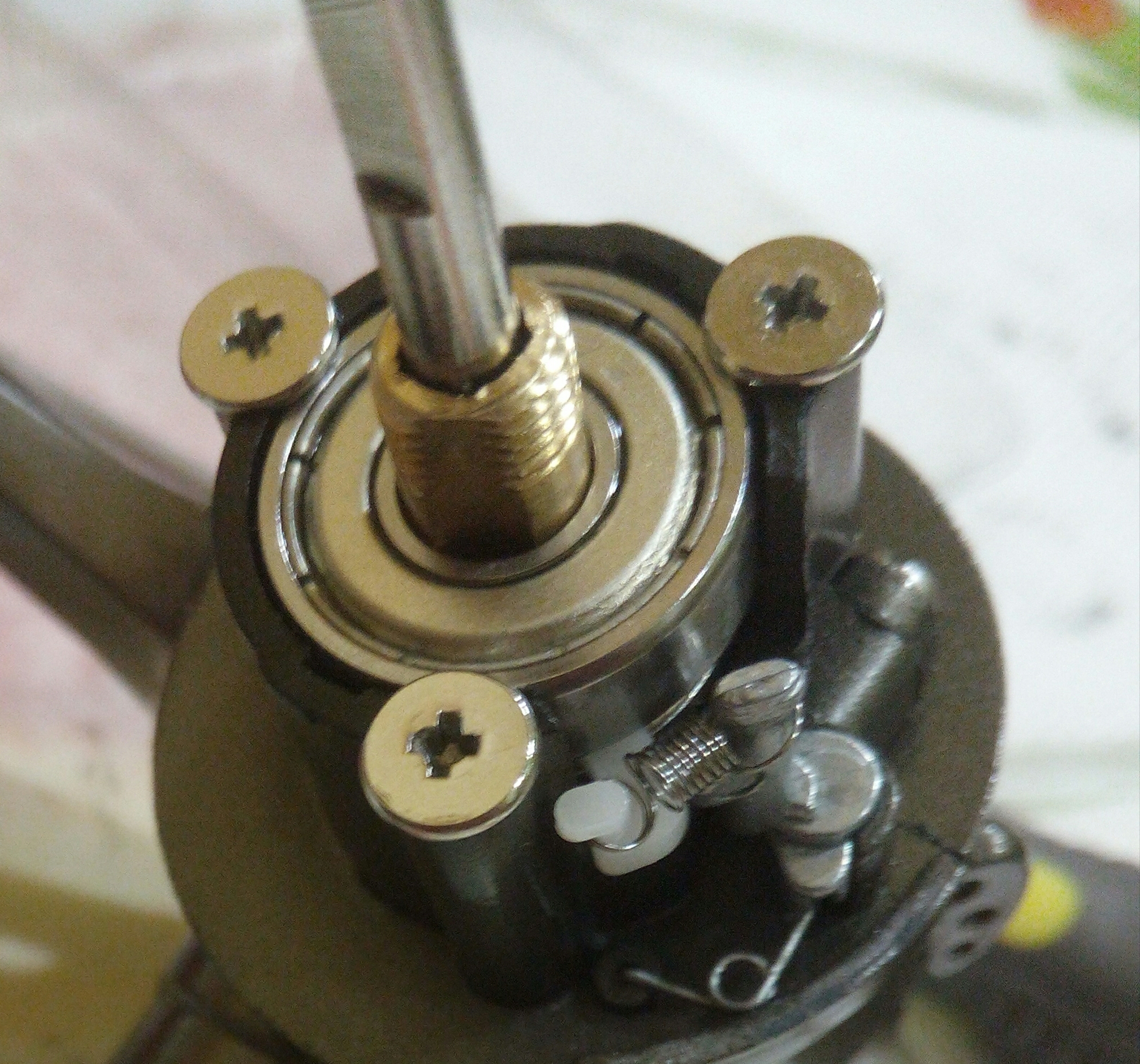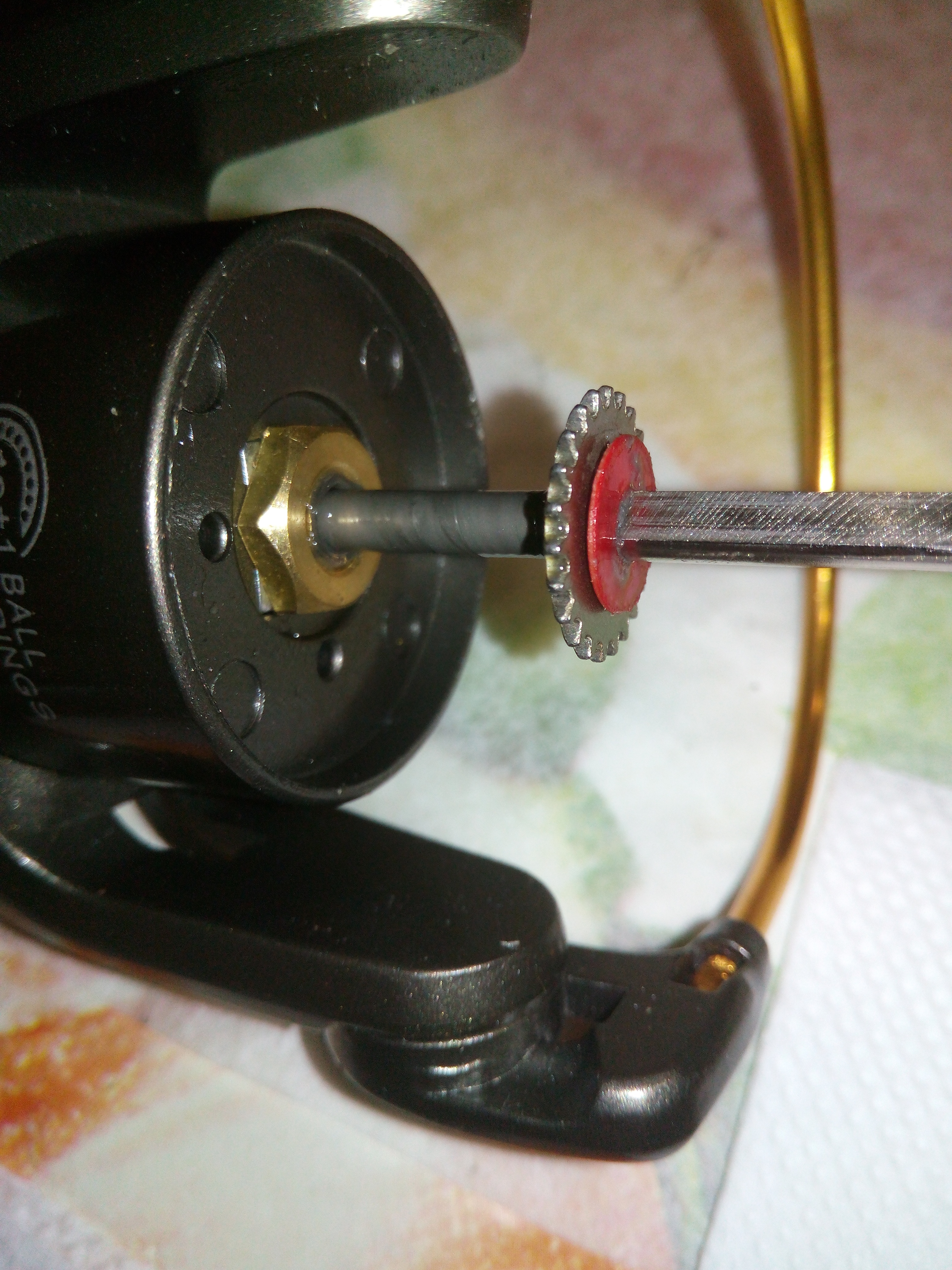 Дополнение к предыдущему посту Spro Grand Arc Tuff-Body 830. Устранение люфтов в рукоятке. Выбиваем шток сустава рукоятки. Делаю это только когда люфт действительно критичный как в данном случае. Иногда шток не поддаётся, тогда лучше не перестараться, иначе может треснуть весь узел, так как сделано всё из очень хрупкого сплава. Затем слегка оттягиваем (расклёпываем) ось, чтобы она расширилась и без зазаров входила в паз. Так как шестигранная часть оси тоже очень сильно болталась в шестерне, то её тоже подвергаем деформации. Пусть лучше рукоятка тяжелее складывается, чем на рыбалке ощущать раздражительный люфт.