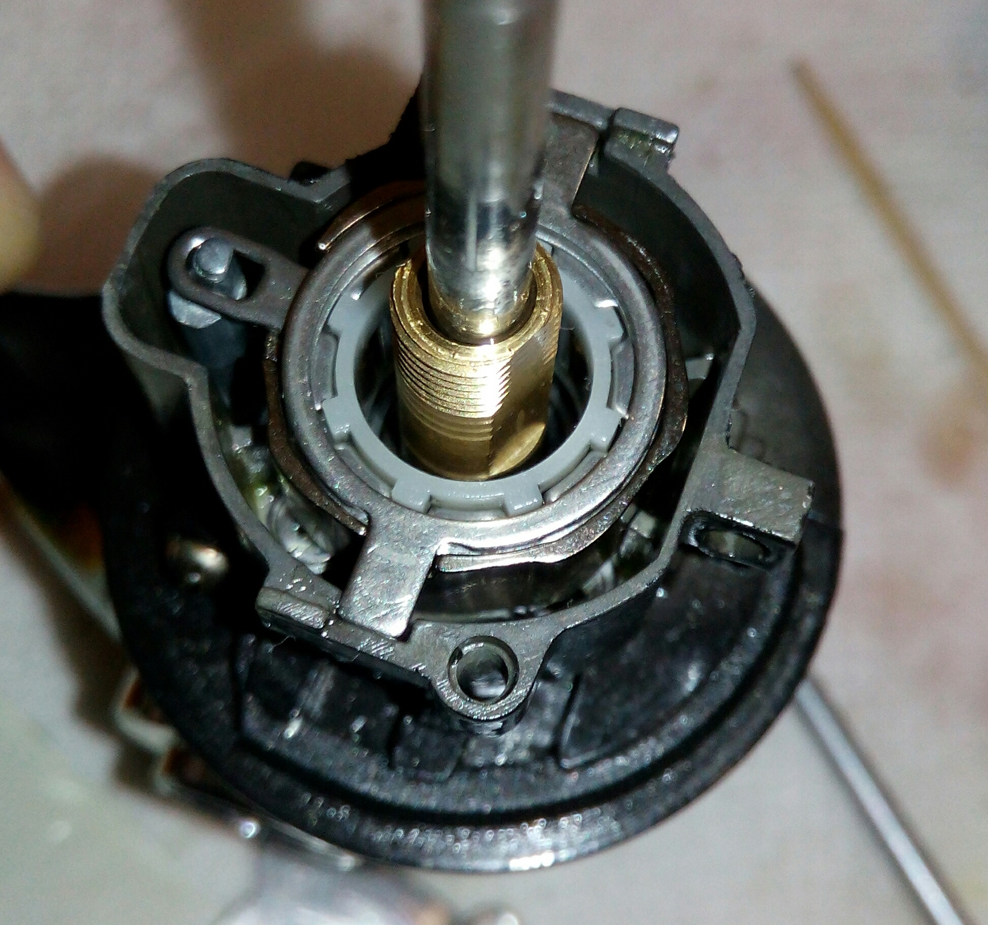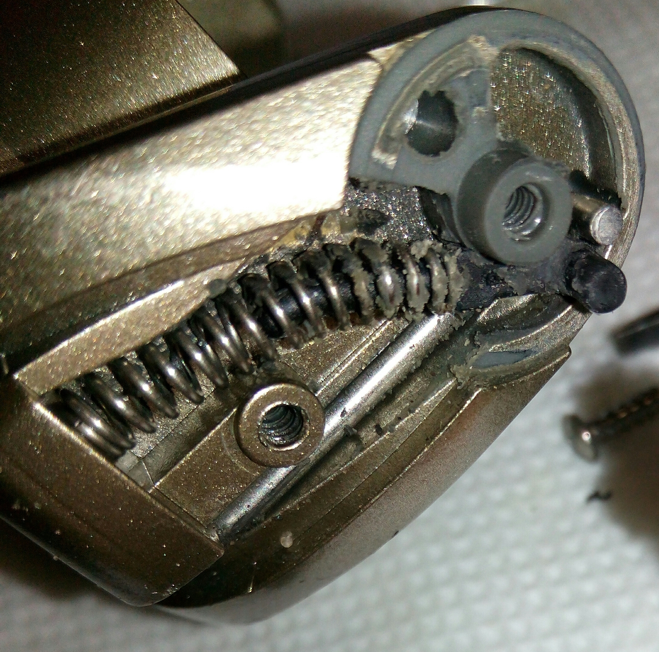 . Совет для тех, кто захочет самостоятельно обслужить такую катушку, нужно аккуратно извлекать паразитку из корпуса. В ней установлена пружинка, которая от малейшего прикосновения стреляет по неизвестной траектории. Хорошо если прилетит в глаз, так вы хотя бы пружинку не потеряете и сохраните функциональность катушки.