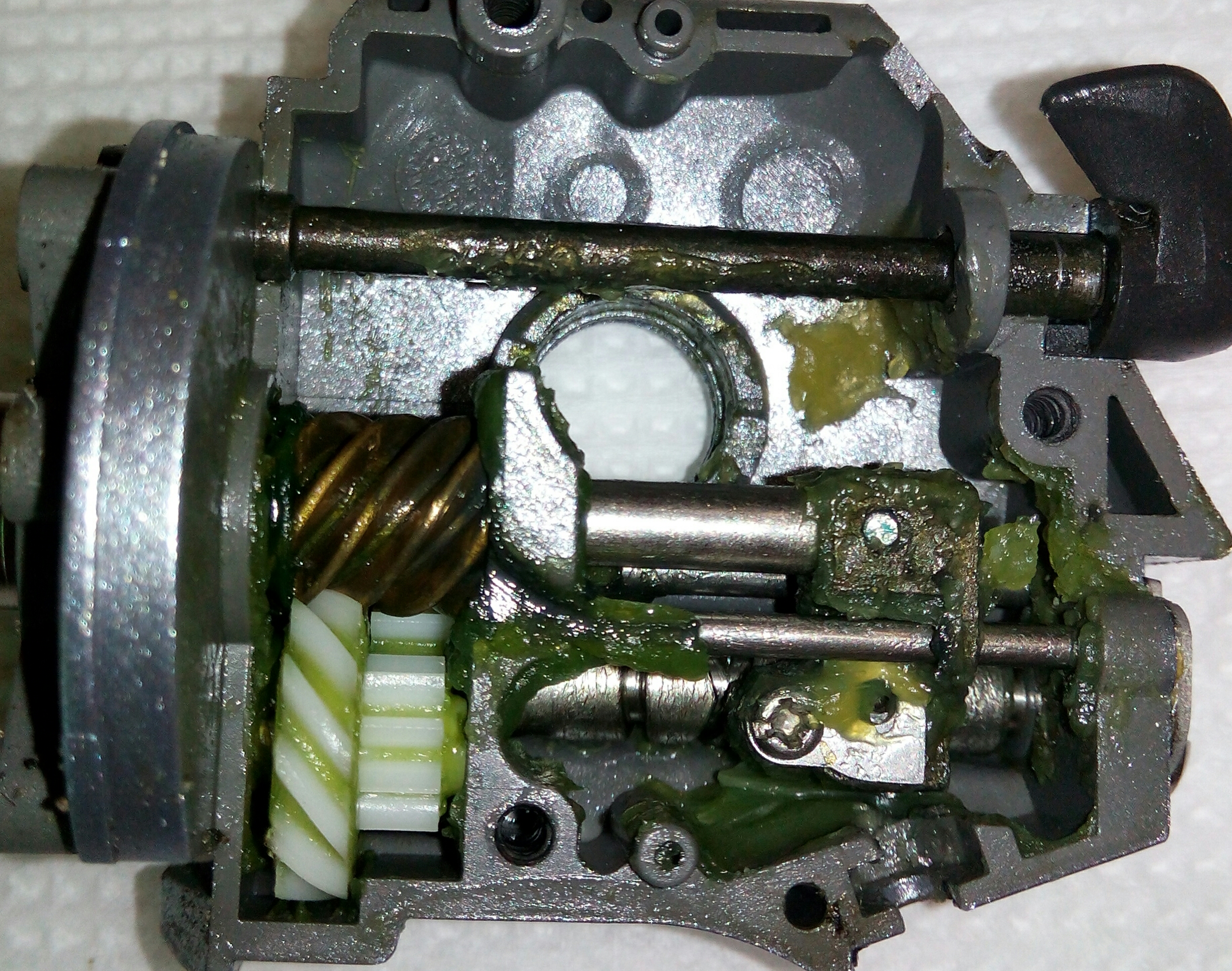 Катушка Shimano Technium 2500FA. Ход катушки был очень тугой, по инерции ротор делал максимум 1,5-2 оборота и резко останавливался. ГП была сильно зажата между собой. Внутри корпуса много лишней смазки, которая тоже притормаживала ход катушки. Так же дужка л/у как пружина сильно распирала в стороны коромысла ротора, соответственно было сопротивление при её отбрасывании, и в посадочных гнёздах пошла косая выработка (ранее писал об этом, пост 64). После того, как всё устранил и смазал новой смазкой, катушка стала крутиться на много легче. Хоть она и не обладает лёгким стартом, но тем не менее ход лёгкий, плавный и в относительно тихий.