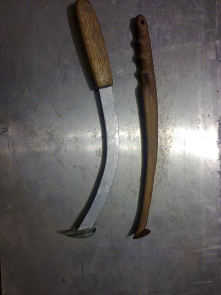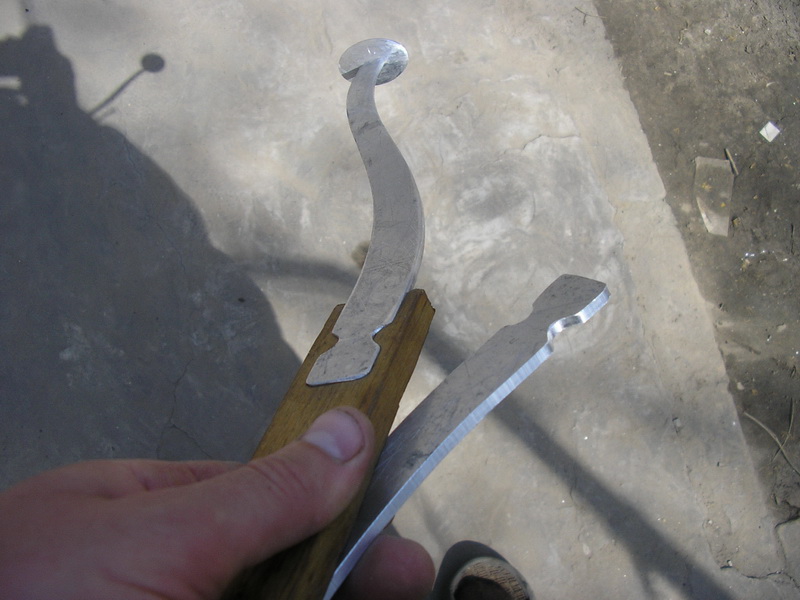 Общая высота 350мм, вылет оси пятака относительно оси ручки 85мм, угол пятака относительно ручки 85градусов. Нож можно более прямой, более S-образные, серпообразный и т.п.