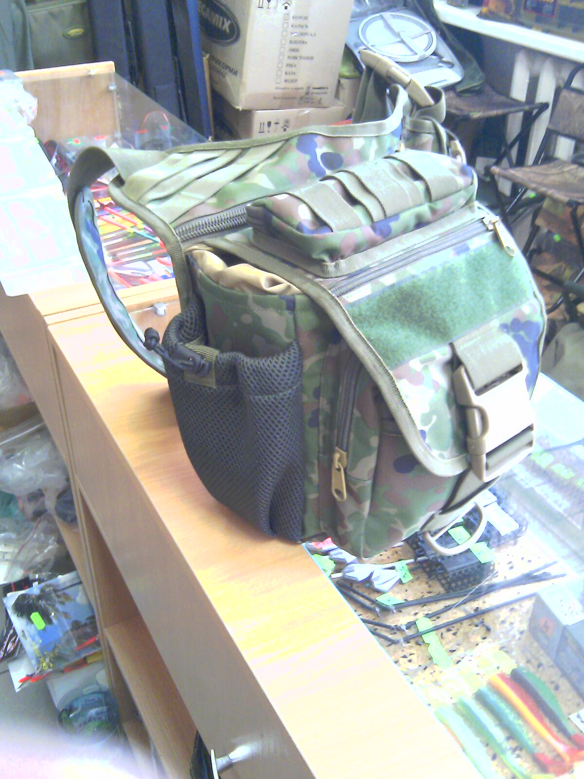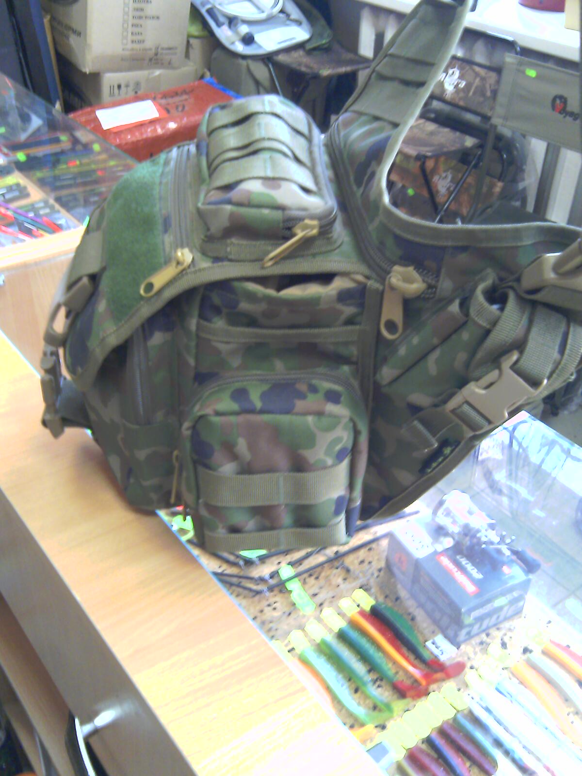 Всем привет. Сегодня было предложена к рассмотрению(и возможной закупке) вот такая рыбацкая сумка. От себя скажу....лично мне ОЧЕНЬ понравилась. Чуть позже обещали более качественные фотки. В сумке очень много удобных карманов и всяких нычек и всякого такого. Одевается через одно плечо(носится сбоку,сзади и спереди) Интересно МНЕНИЕ РЫБАКОВ(особенно тех,кто много бродит по берегу). Ориентировочная стоимость 500-450 грн.