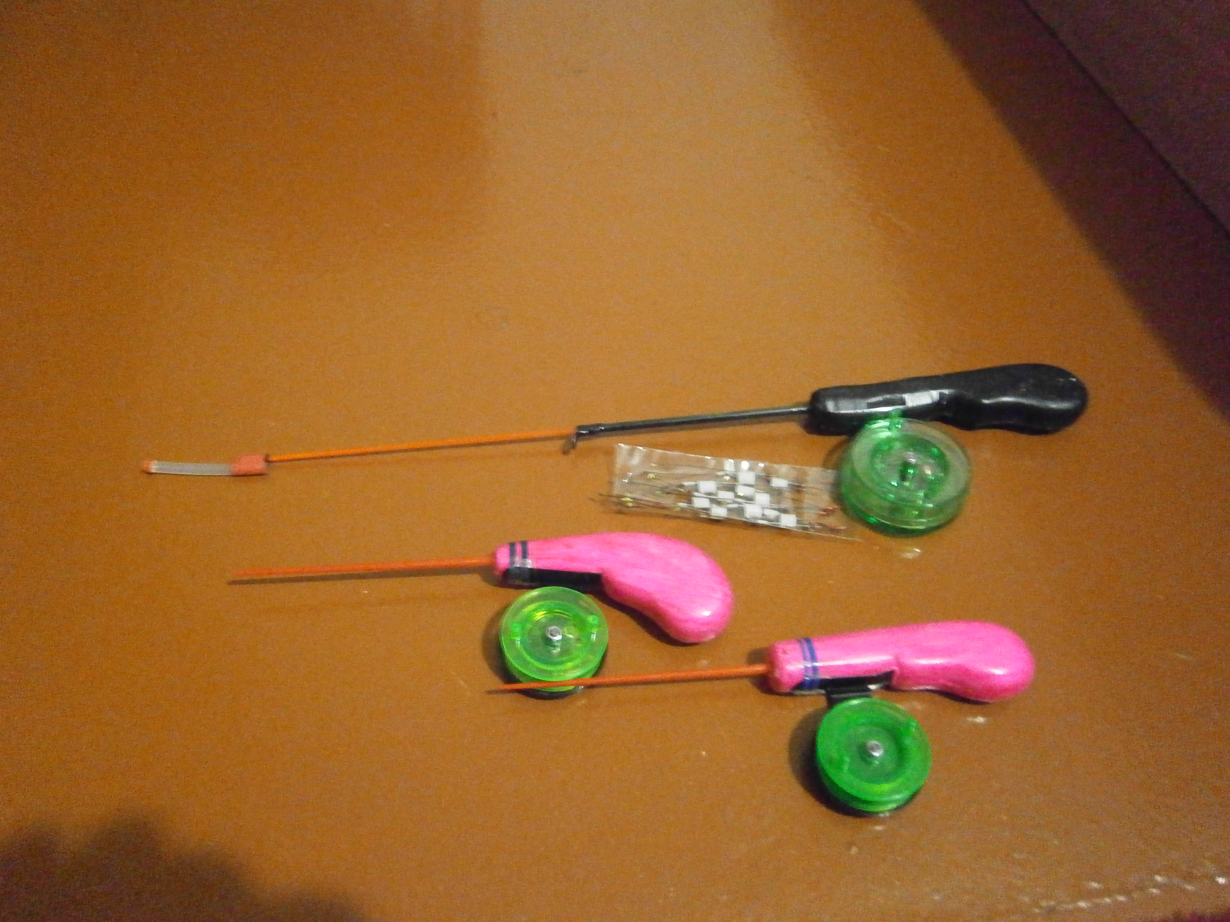 Добавлю немного своих поделок из зимней программы , телескопический удильник ( карбон хлыстик глухой, убираеться в ручку) на судака с силиконовым кивком, простой удильник с стеклопластиковым хлыстиком, кивки из силиконовой трубки,зимние удочки и удильник -телескоп карбон-стеклопластик, бокоплавы , при обычном свете и в ультрафиолете.
