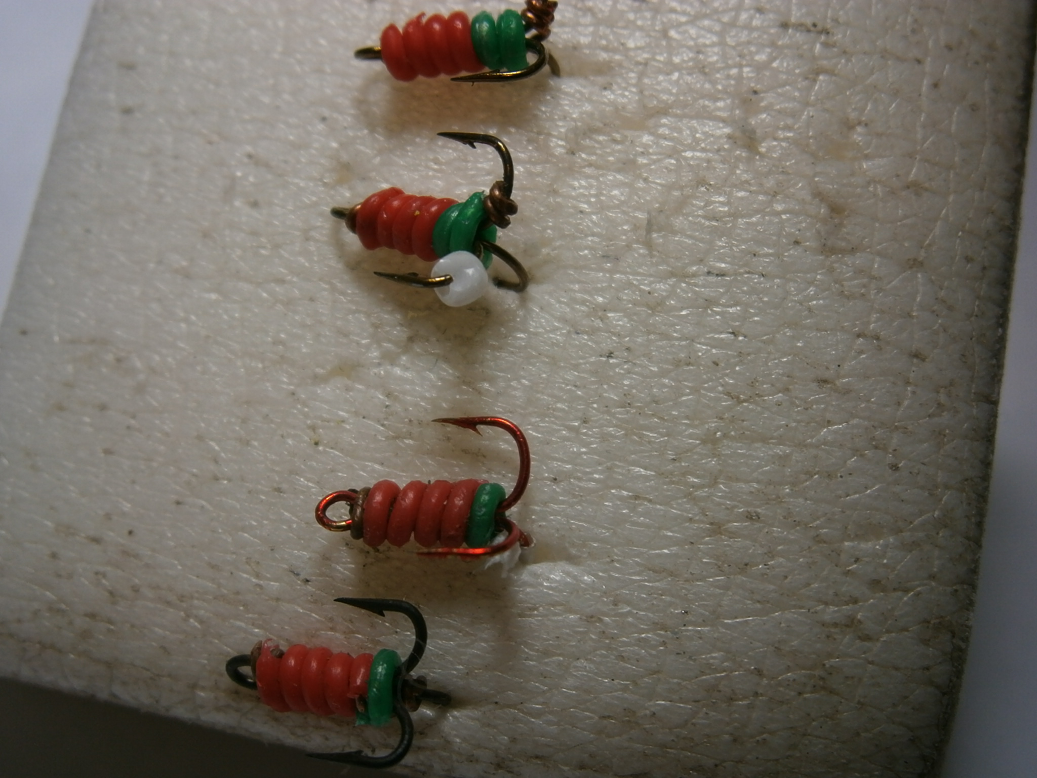 Вот такие делал яйца ,пирамидку сегодня спаял, но окунь предпочитает вот такую двухцветную проволочку из телефонного кабеля,ставлю выше основной, обычно это уралка или крупный муравей,это на глубины более 3х метров.