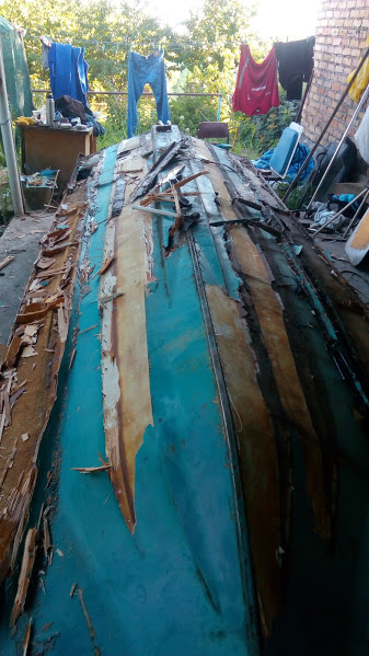 Я со своим лучшим другом,Alexribalka которому я очень благодарен, взялись за ремонт судна. Снятие слоёв стеклоткани проходило очень просто,так как при изготовлении ткань не была пропитана как полагается. Изготовили новое днище из фанеры 4 мм, врезали в кормовой части дополнительные стрингеры. Востаннє редагував Dimon kulibin: 02.09.2016 о 23:00. |