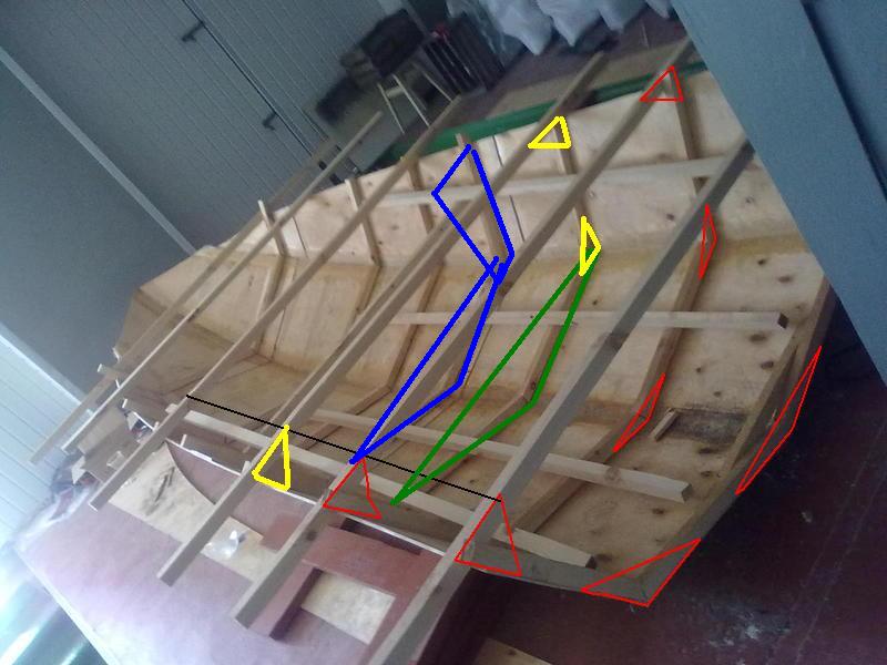 1. рекомендую все шпангоуты связать косынками с фанеры, можно даже с 10тки.... на картинке красные, иначе у конструкции небудет целостности и жосткости.... и шпангоутом ее неназовеш =)))).....