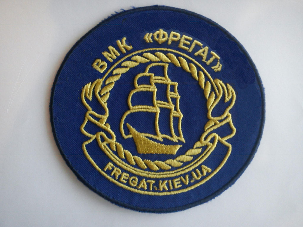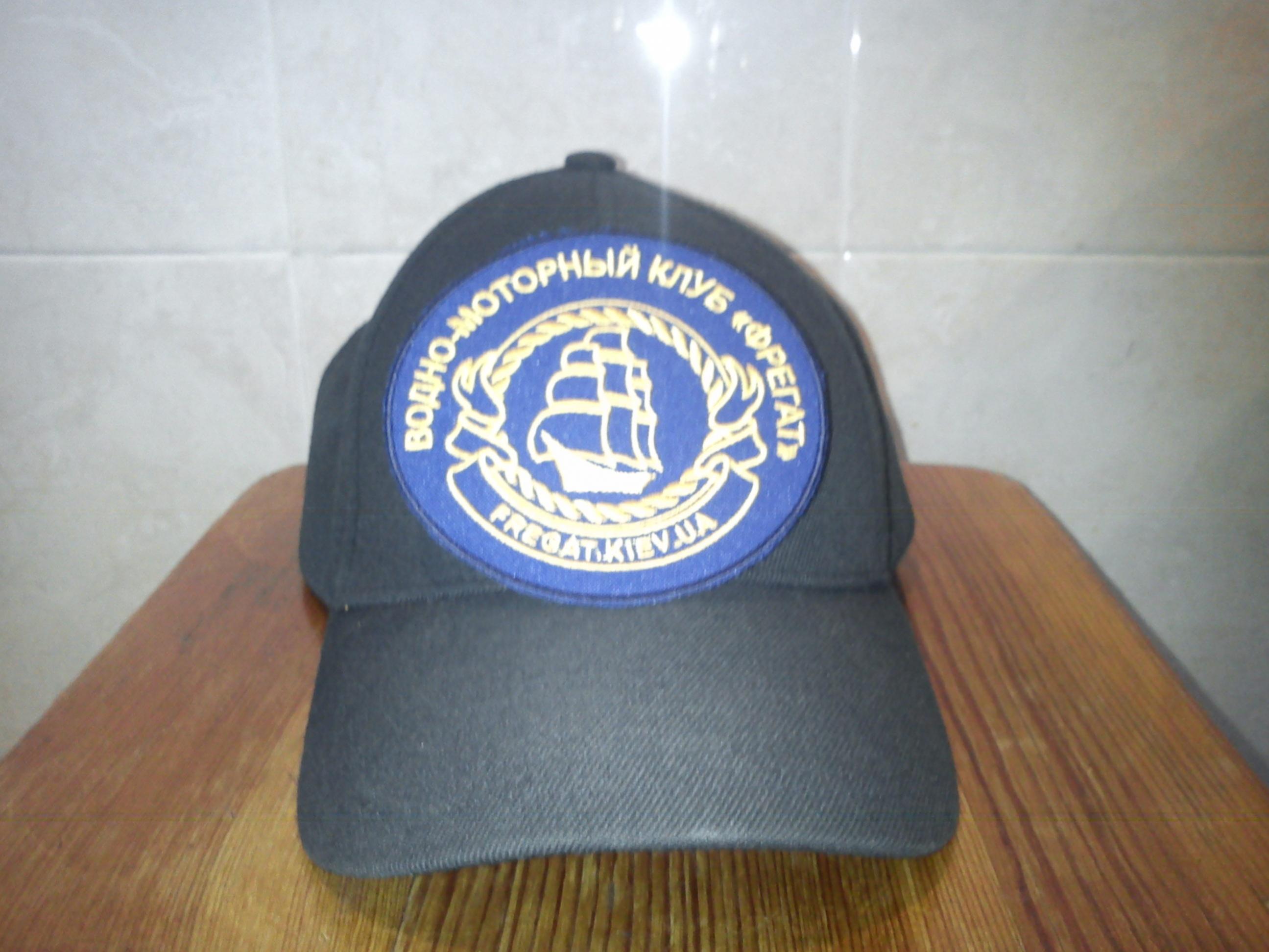 Для кепок можно убрать слова "Водномоторный клуб" И оставить только "Фрегат" сверху. Таким образом можно будет уменьшить размер шеврона не уменьшая размера шрифтов и картинок.