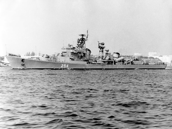 07.10.1970 г. - 15.07.1971 г., находясь в зоне военных действий, выполнял боевую задачу по оказанию помощи вооруженным силам Египта. 09.11.1970 г. при сопровождении отряда кораблей НАТО в Средиземном море столкнулся с английским авианосцем “Ark Royal”, но из строя не вышел и продолжил выполнение боевого задания.