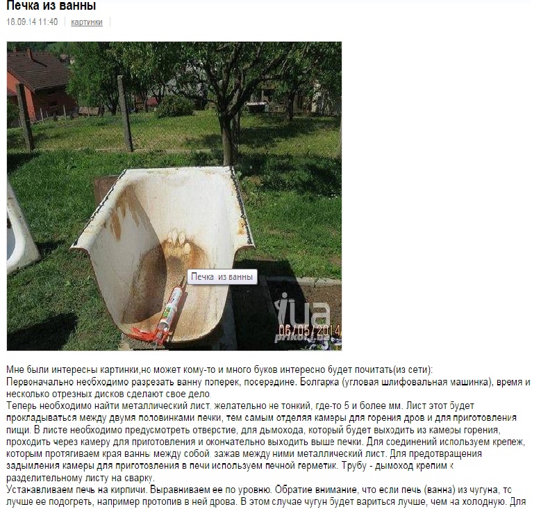Судя по этим фото она чугунная : Печь из ванны. Обсуждение на LiveInternet - Российский Сервис Онлайн-Дневников