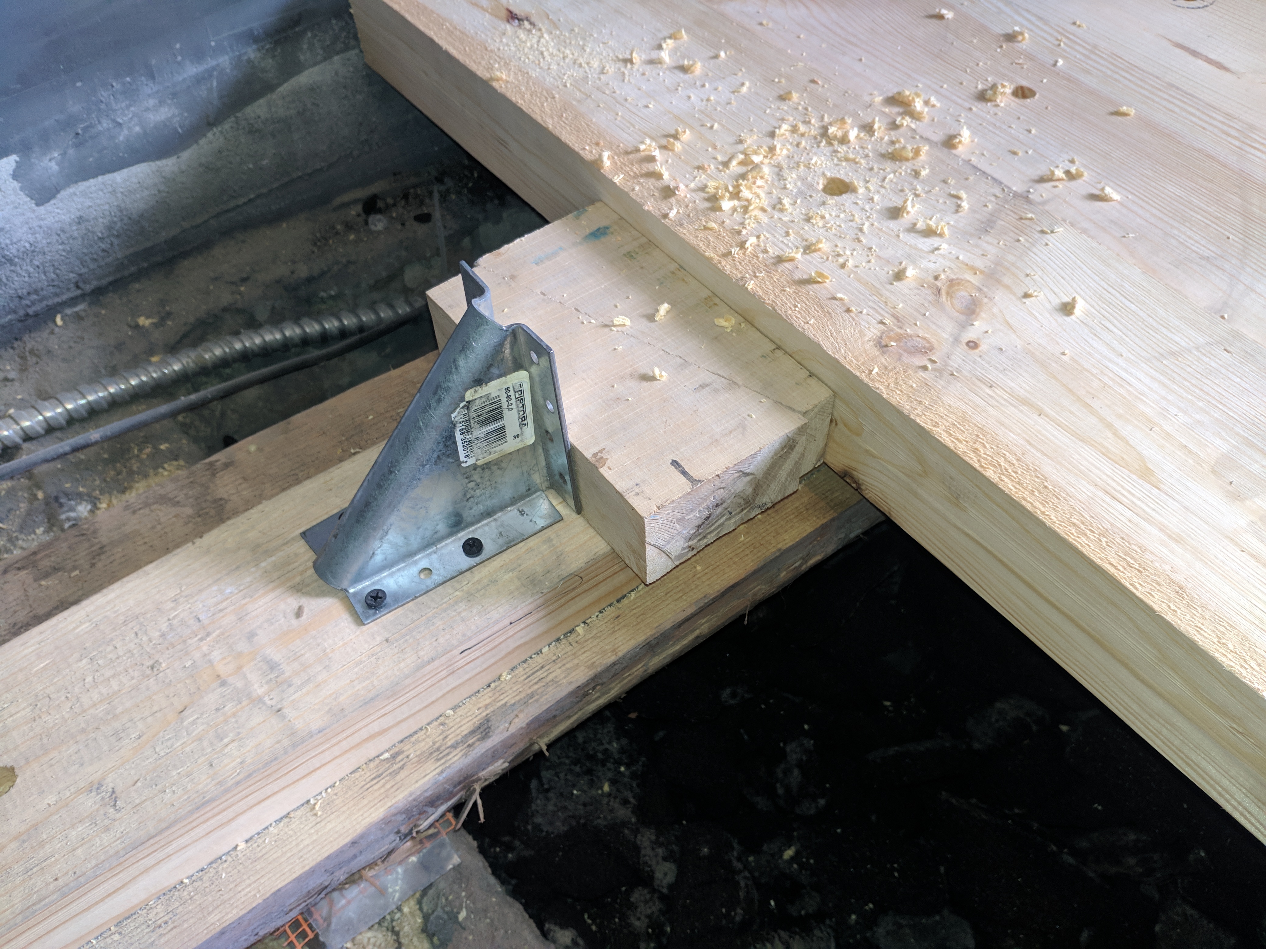 Пикантные подробности, кому интересно. Соседи уже интересуются что и как, походу, в доме мы первые замену полов делаем. Приспособление упростилось до покупного угольника (в Металвис как раз распродажа остатков была, 33 грн/шт). 4 самореза 3,5х30 держат без проблем подгиб на 15 мм сухого бруса 60х120. Это более, чем. Засверливаться в лаги и использовать в качестве упоров штыри ф16 не стоит, они (болты 10-го класса брали) критично сгибаются на первых 20 квадратах обычной половой доски и отказываются лезть в отверстия. И сложнее клинья подбивать на штырях, и в лагах лишние дыры. Еще вопрос в дереве, брус покупали дорого (7к куб), но получили с влажностью 8 и я бы сказал экстремально ровный. Клильня использовались чтобы слегка подбить примерно на трети бруса, пару-тройку пришлось силовым ужимать, остальное достаточно руками придавить.