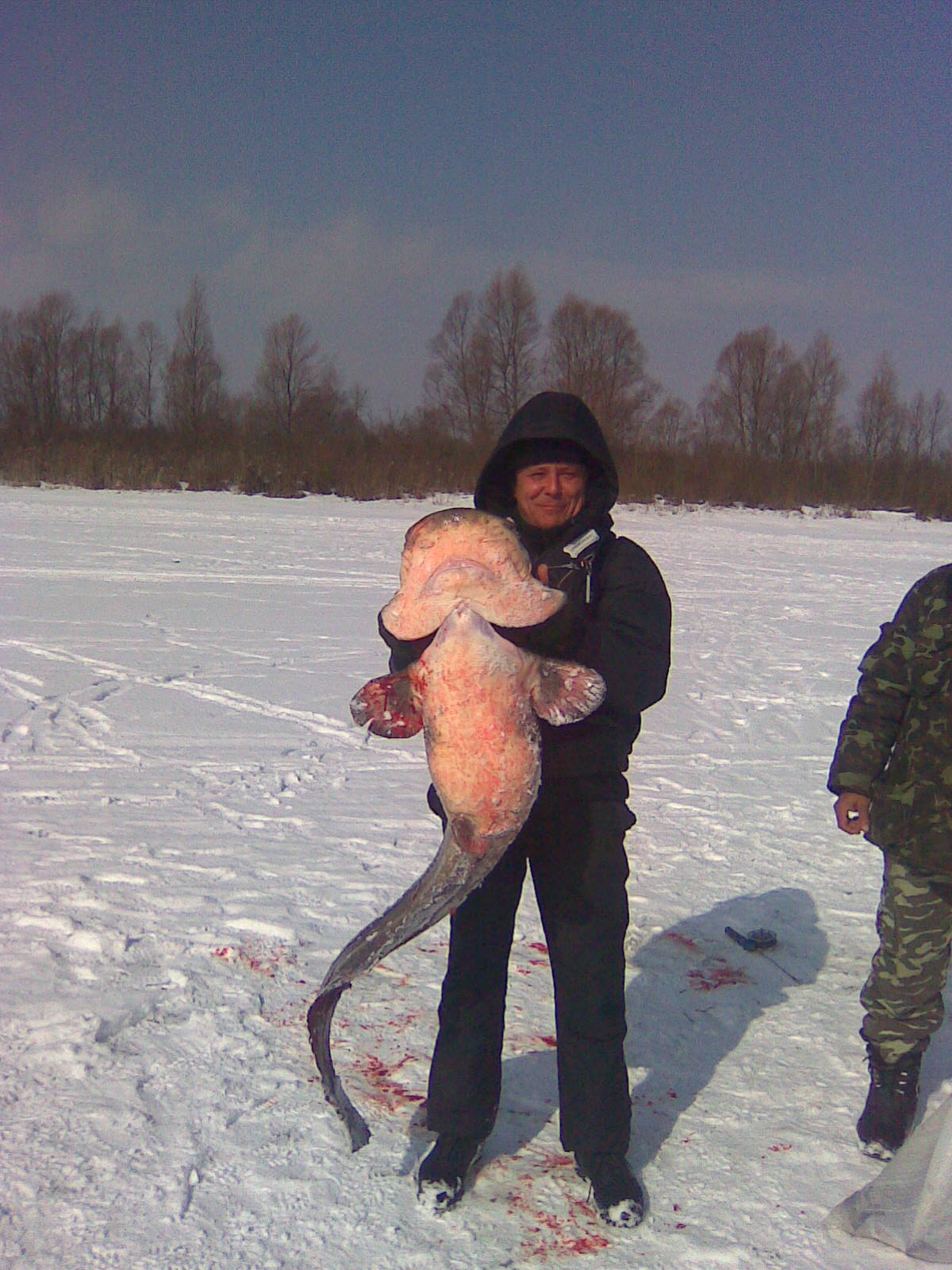 Пойман на зимнюю удочку, ели присмотреться она там, на заднем плане лежит!Как раз в то время когда все бограми рыбу тягали возле ГЭС, только на 150км выше! ОТВЕЧАЮ!