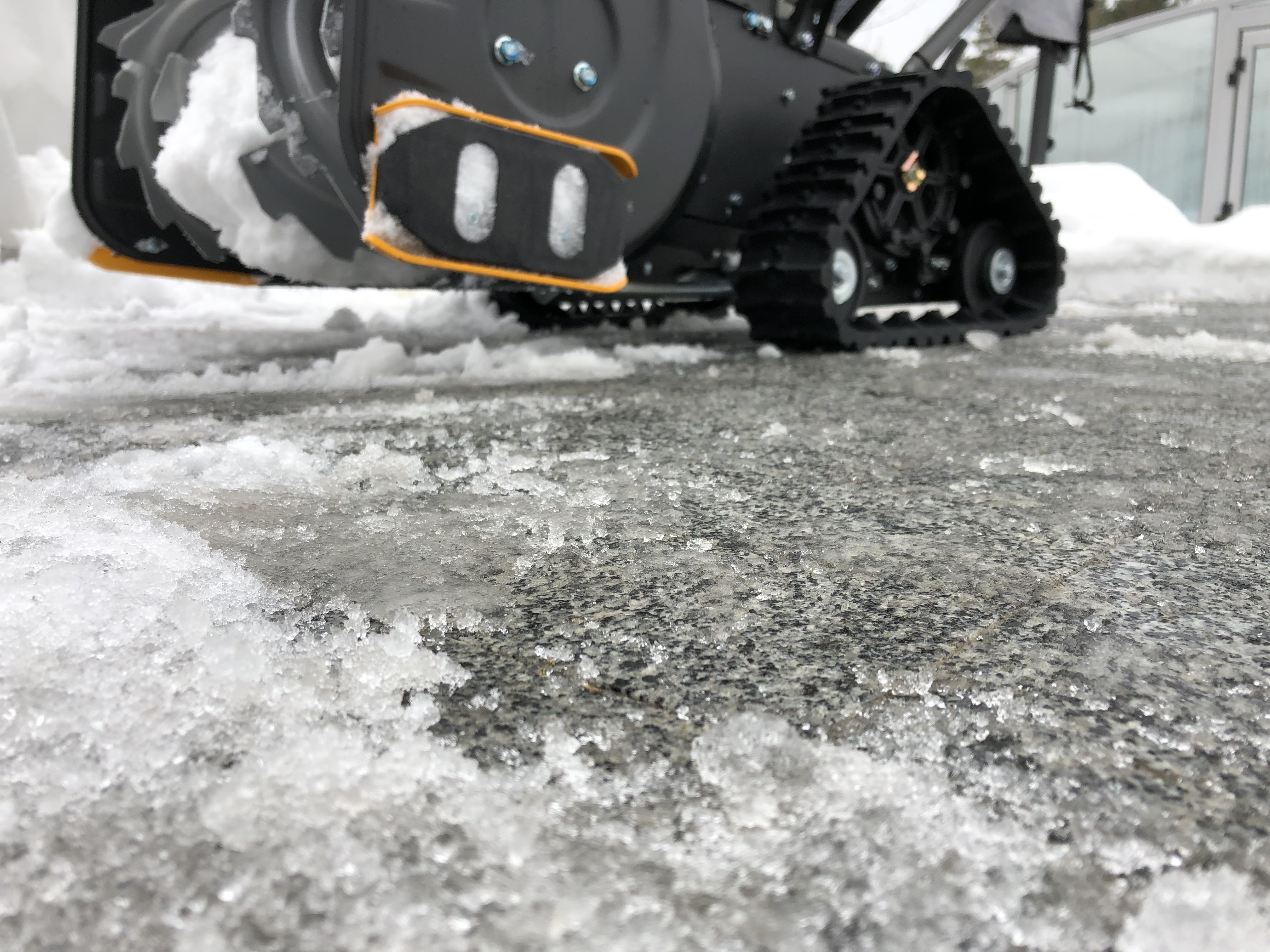 Мокрый снег в плюс бывает что забивает сопло и надо прочищать палочкой. Чтоб не забивалось, надо не отпускать механизм снегоуборки даже на "холостых" переездах и откатах - тогда забивается гораздо реже..