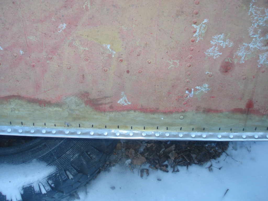 Можно использовать алюминий, можно нержавейку, (с нержавейкой шли когда то прогрессы). Примятая не скула, это килёк у П 4, он же с изгибом, а нерж - 1 мм, это из за отблеска вспышки так кажется, на снимках он есть без бликов - то ничего вроде.,
