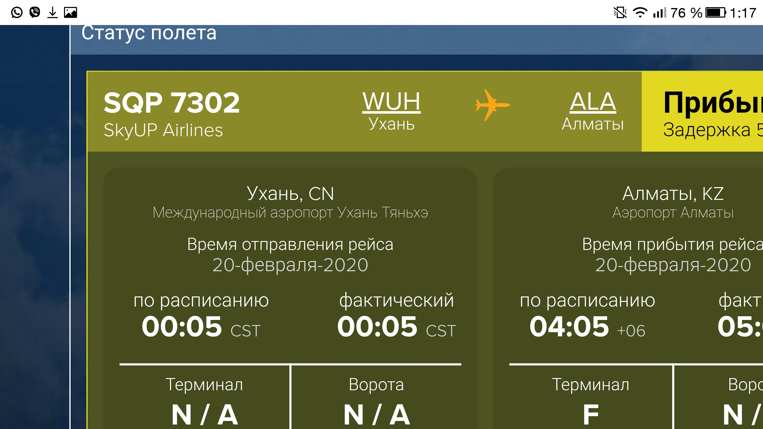 Интересно, рейс заявлен как Вухань(Ухань- Алматы). Номер рейса на скриншоте. Интересно почему нет конечной точки(аэропорт прибытия рейса) ? |